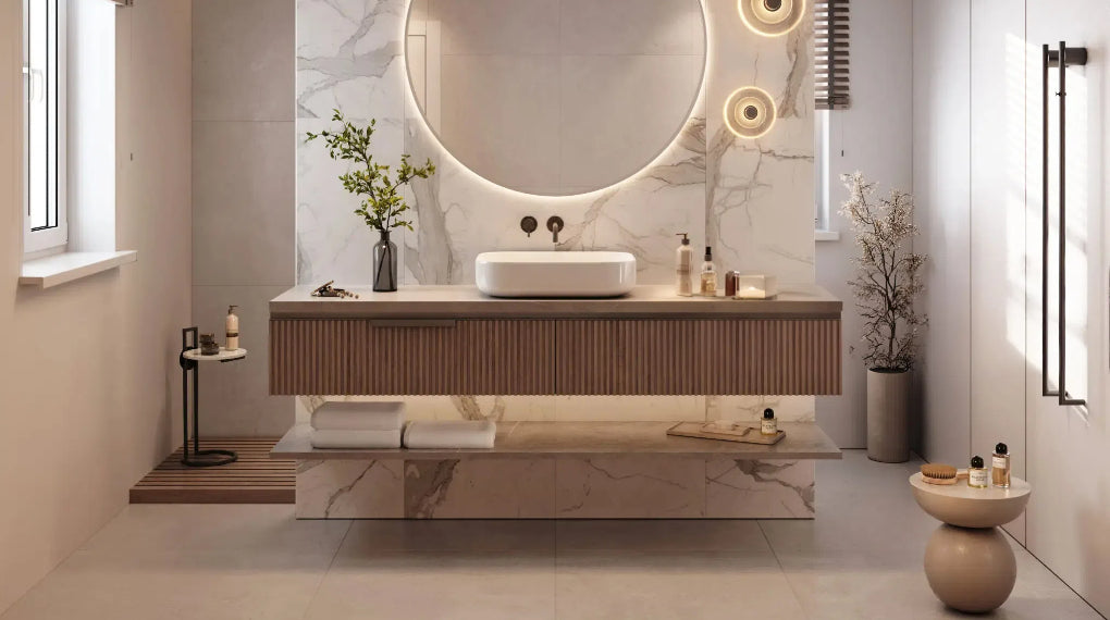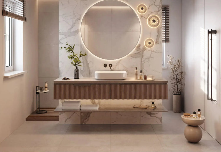Save $60Elegant Ceramic Sink with Matte Silver Faucet---The bathroom vanity set features a ceramic sink paired with a matte silver faucet. The high-quality ceramic sink is durable and easy to clean, offering a modern look that fits any bathroom decor. The matte silver faucet adds... -