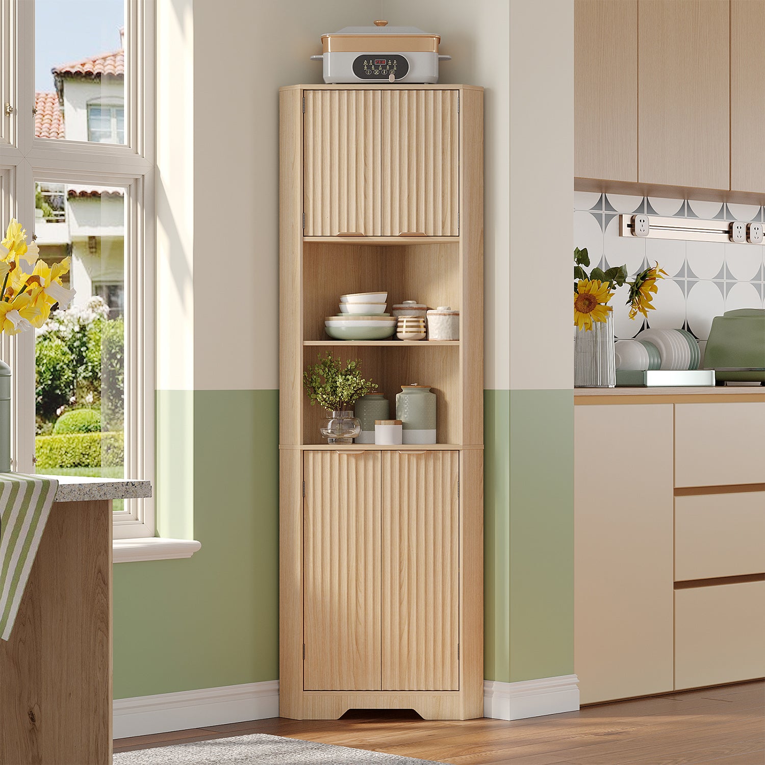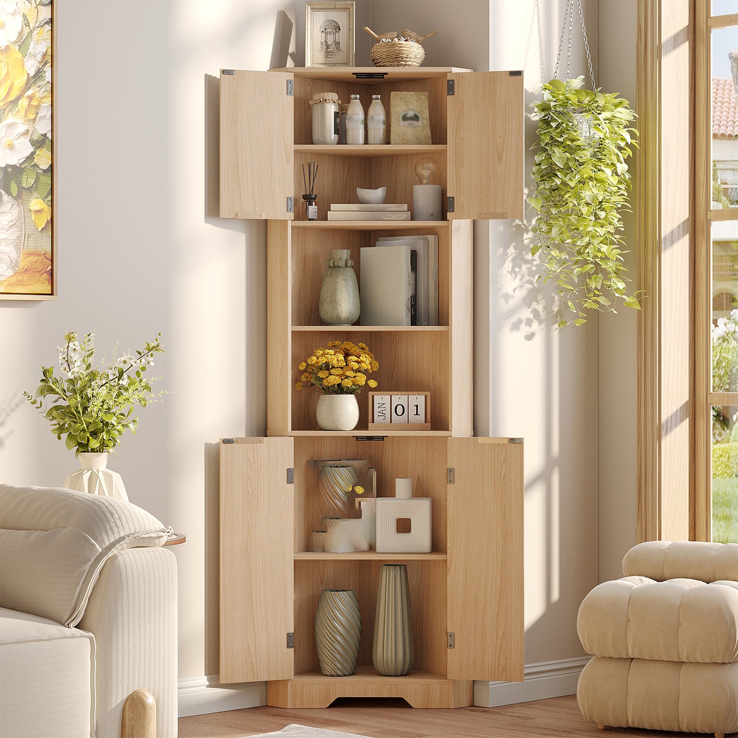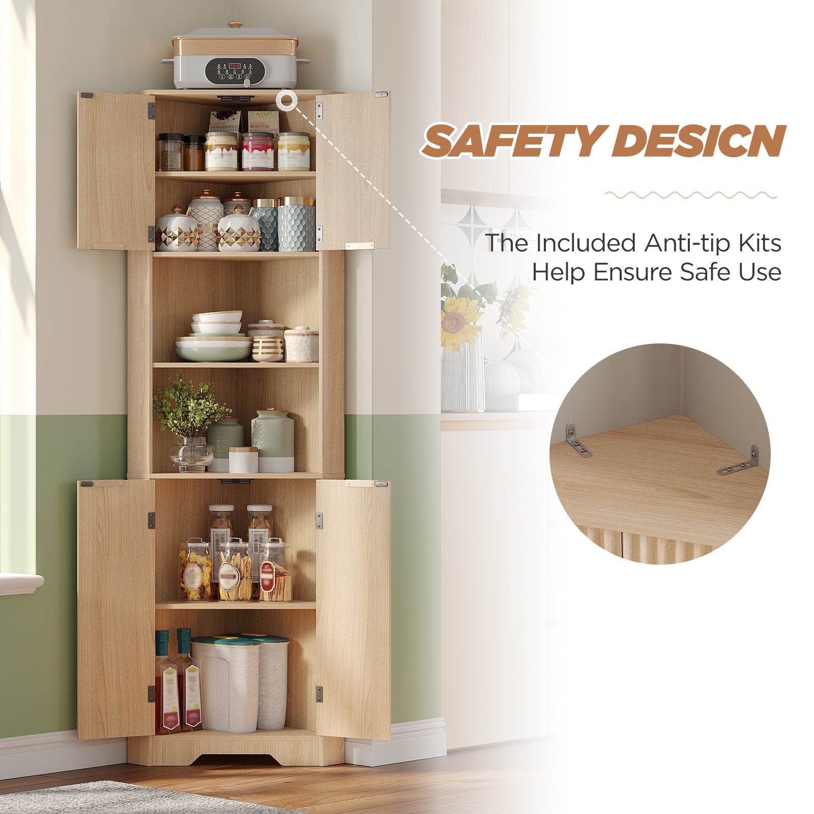 68" Tall Corner Cabinet with Magnetic Lock, 26" Wide Storage Cabinet with Stable Support Legs