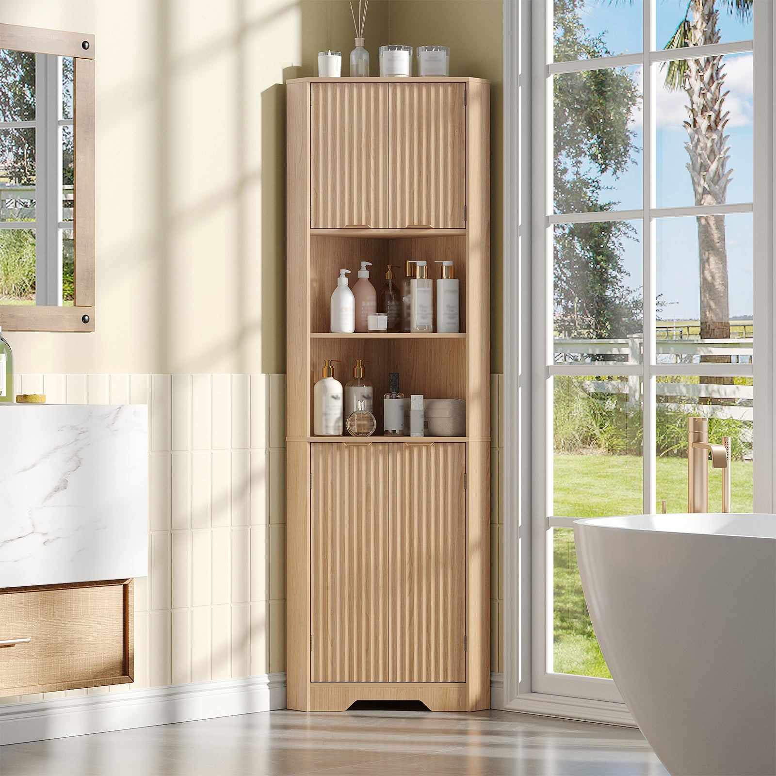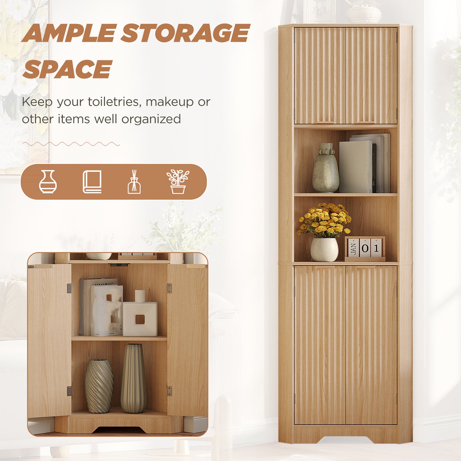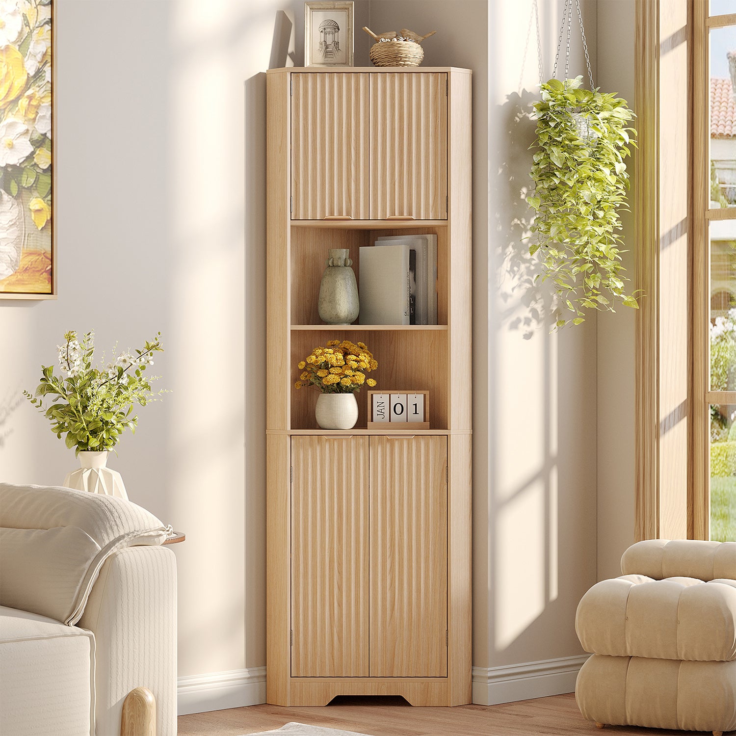 68" Tall Corner Cabinet with Magnetic Lock, 26" Wide Storage Cabinet with Stable Support Legs