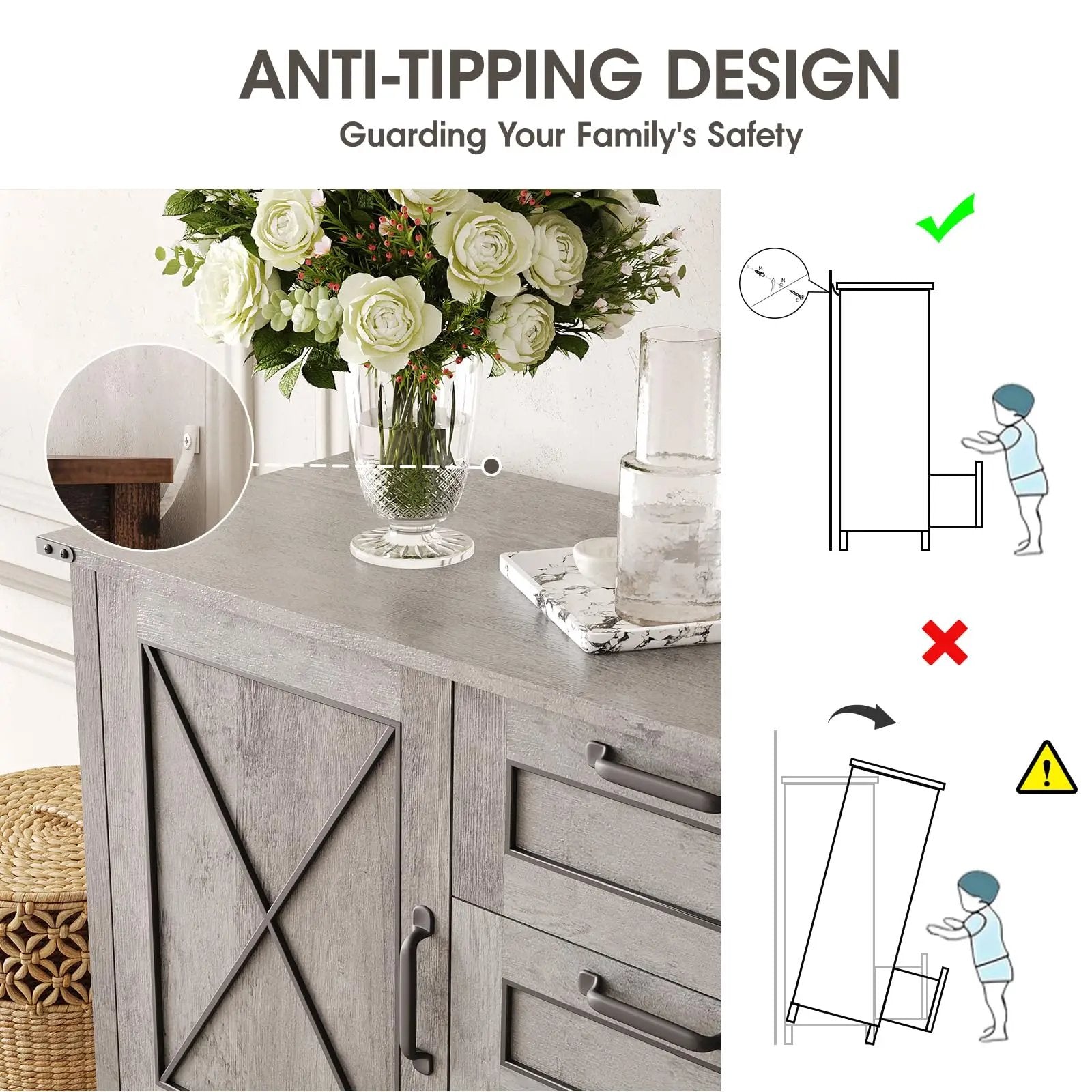 Aparador tipo buffet de estilo rústico con 2 puertas y 5 cajones