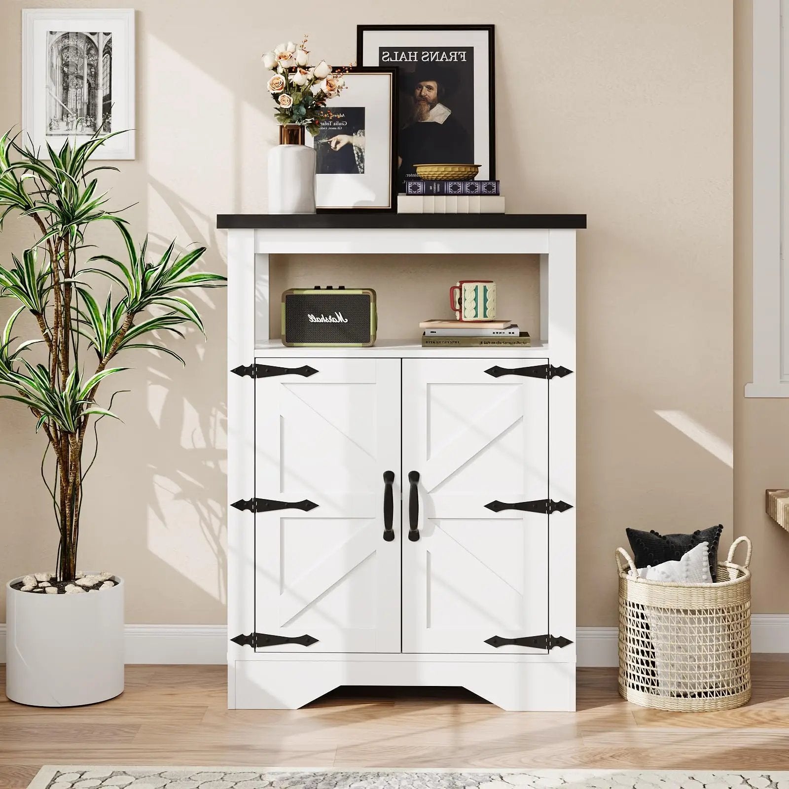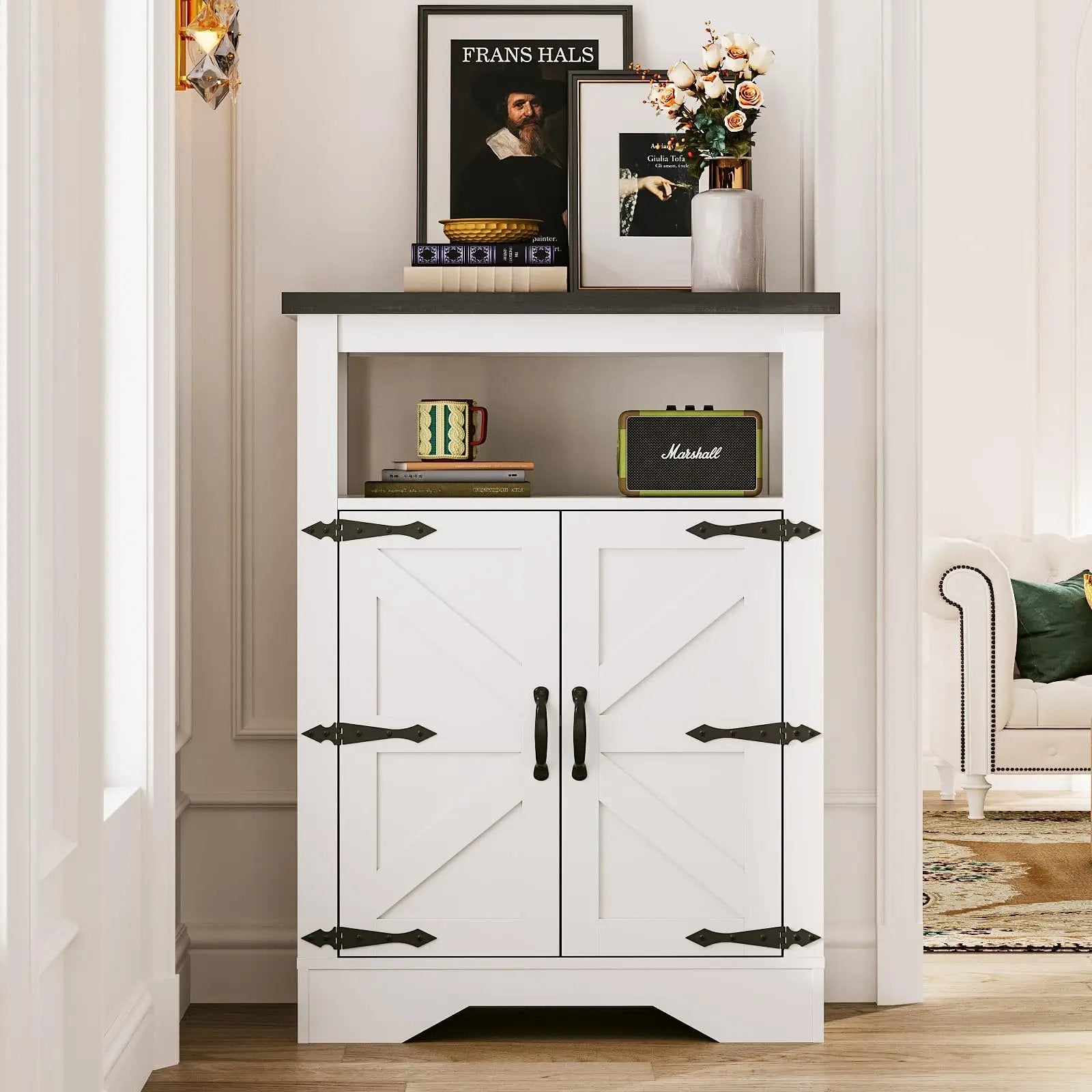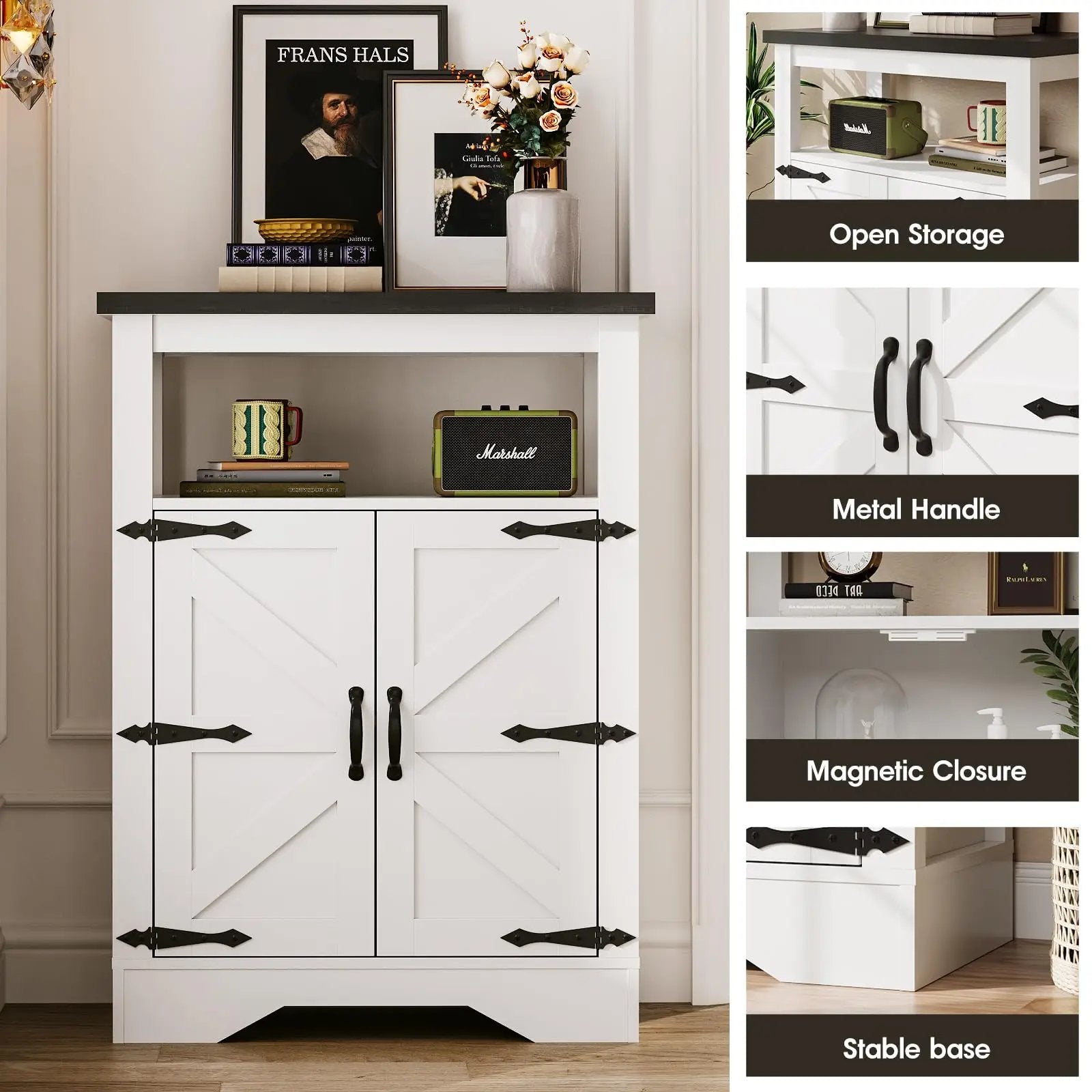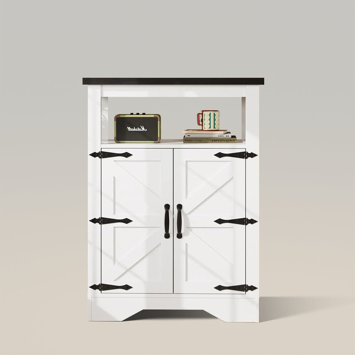 | Special Feature | Lined, Metal Cross Decor, Rustic Finish, Adjustable Shelf |