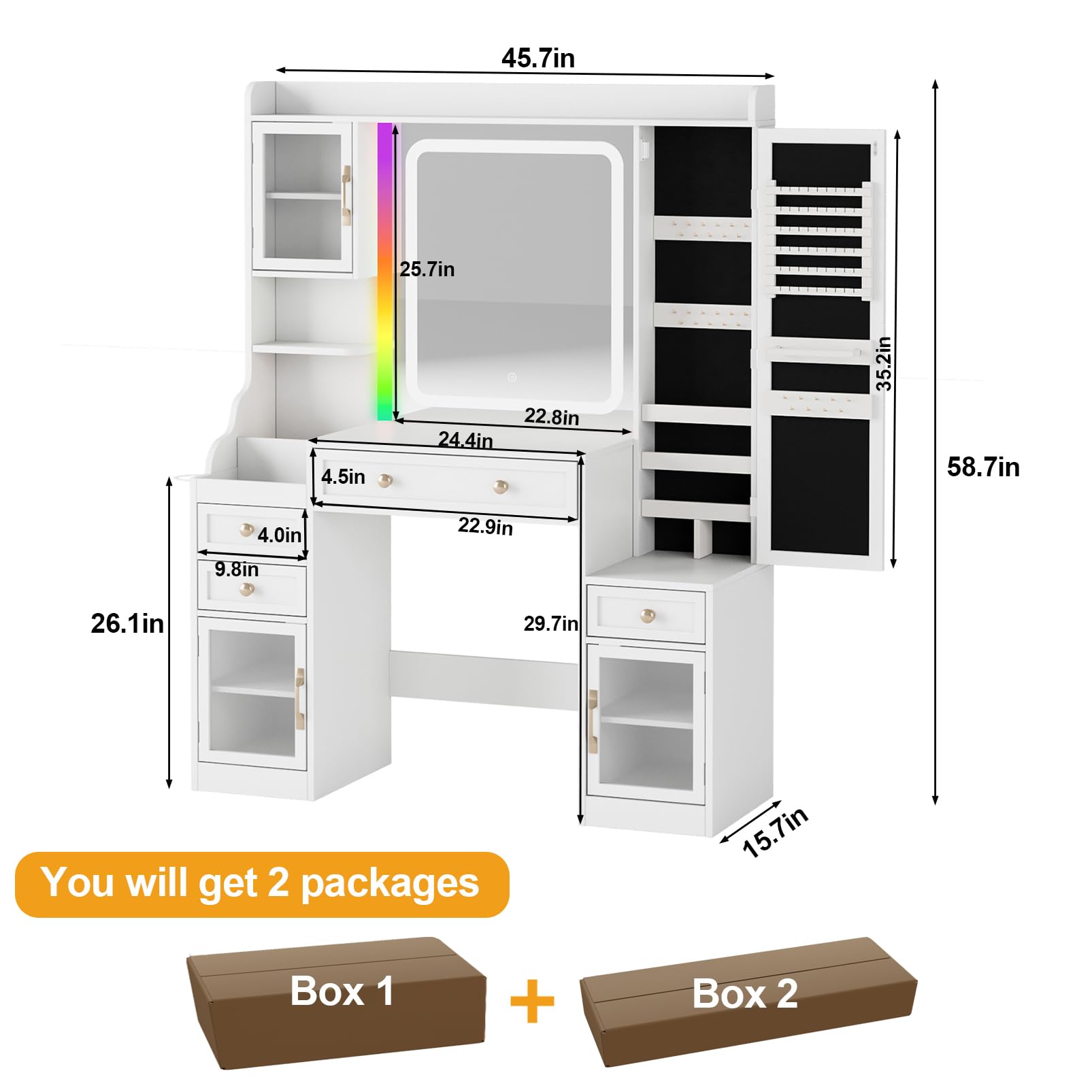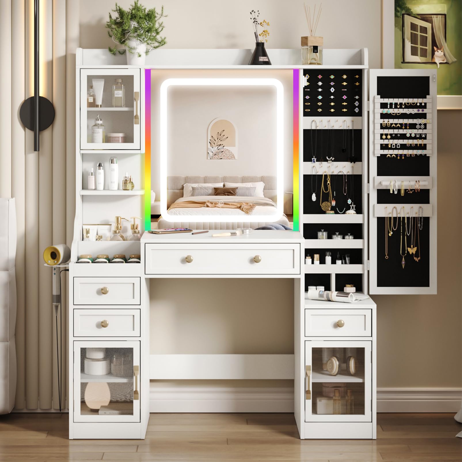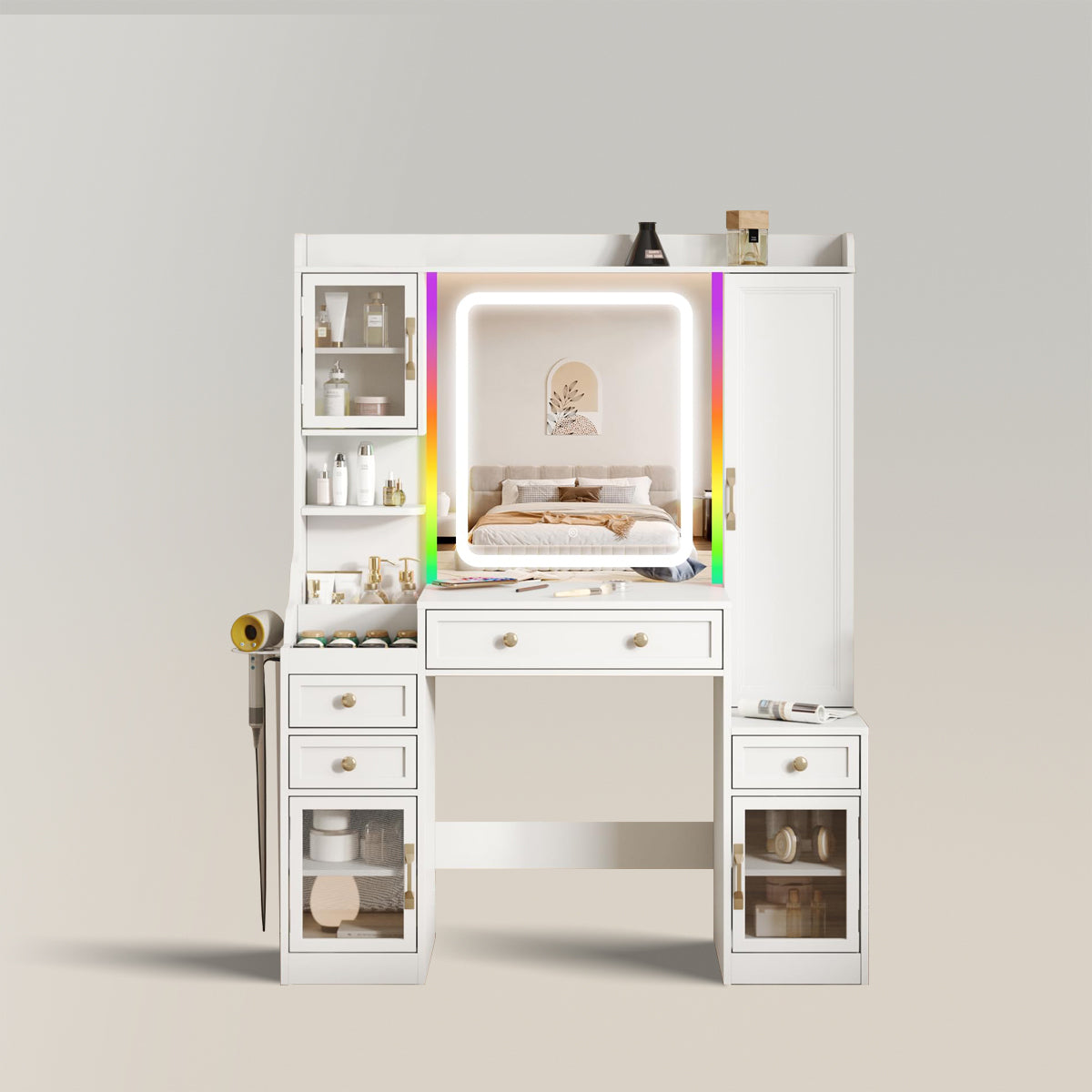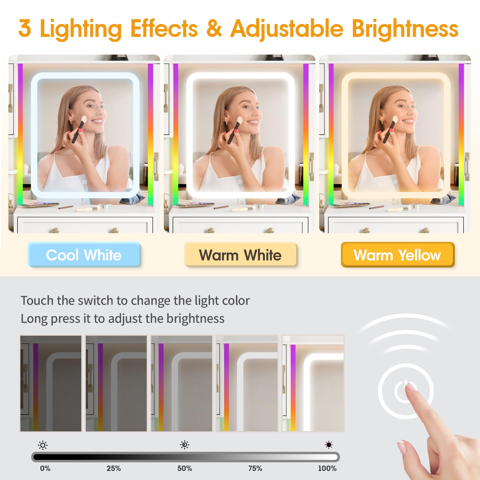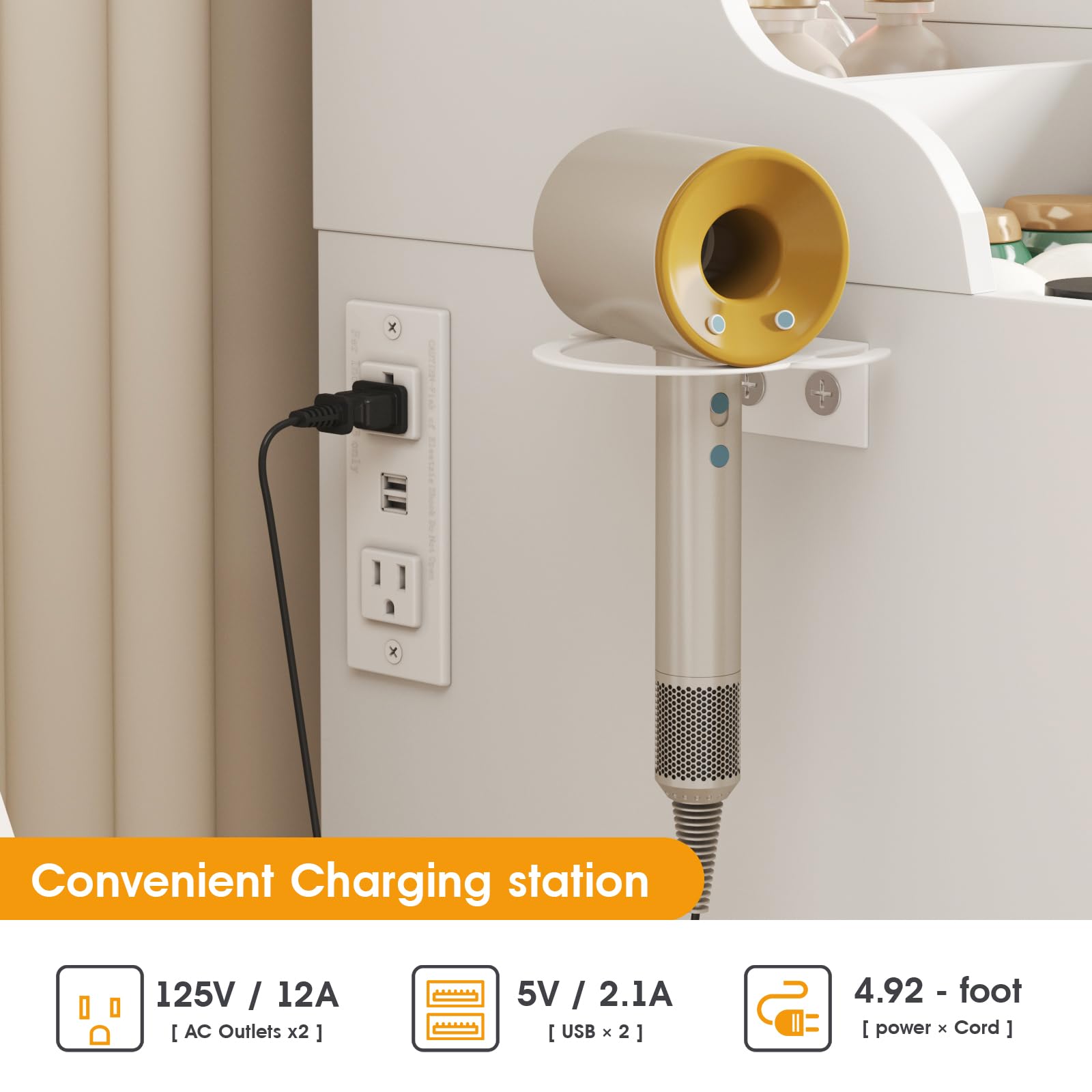 Tocador con espejo iluminado por LED y regleta de enchufes