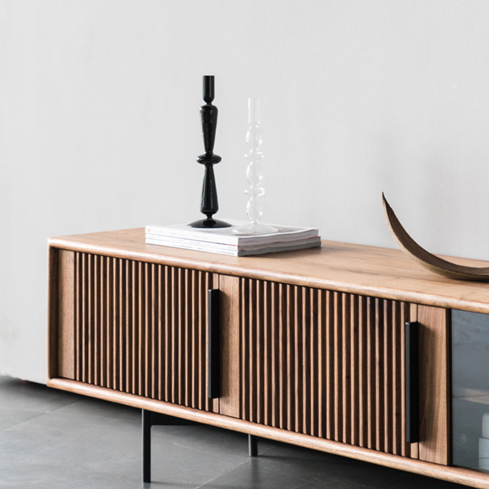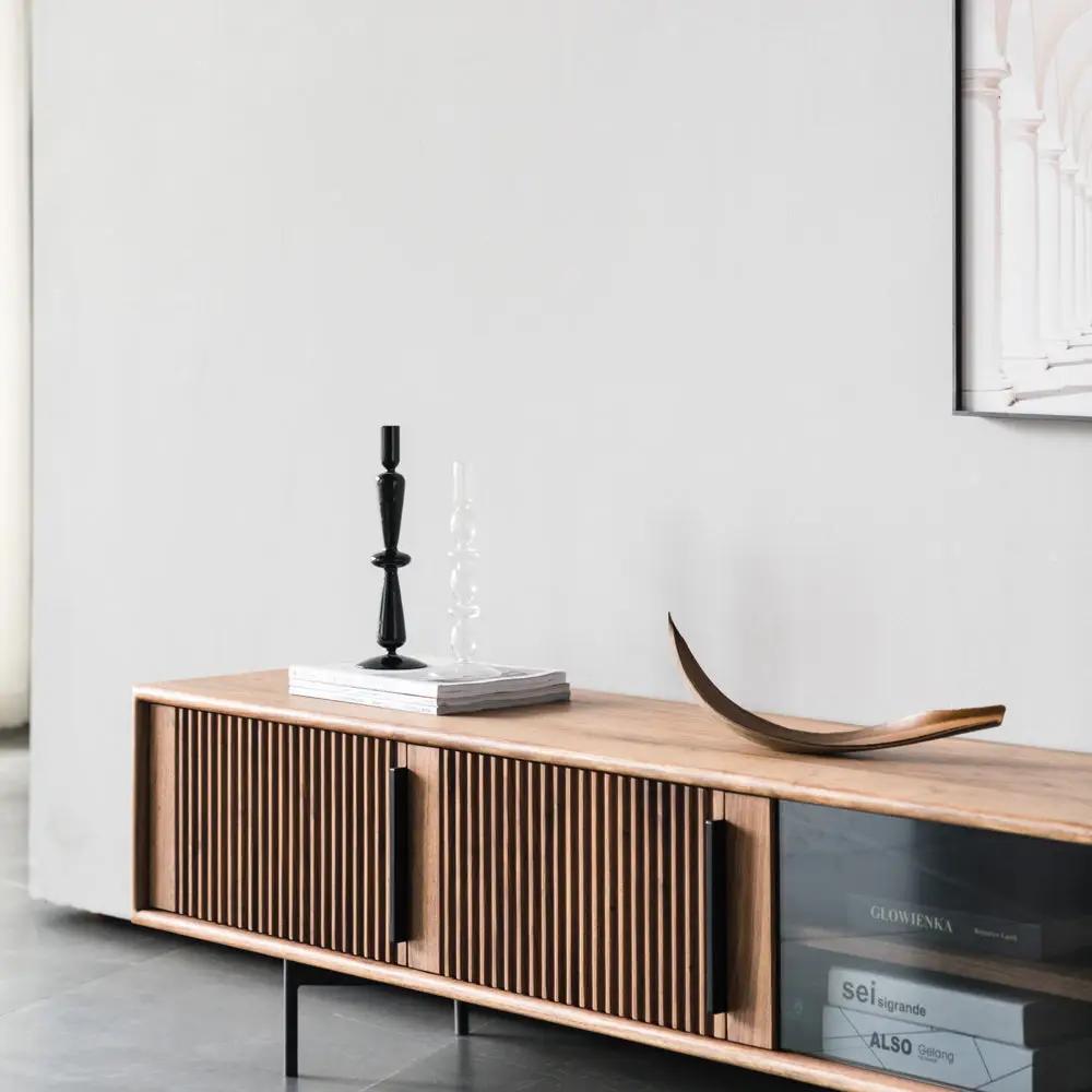Los cajones de madera con paneles de formas onduladas modernos son resistentes al desgaste y duraderos. El panel enchapado en nogal es un guiño al estilo vintage y a la naturaleza, mientras que la textura enchapada en negro le da una elegancia discreta.