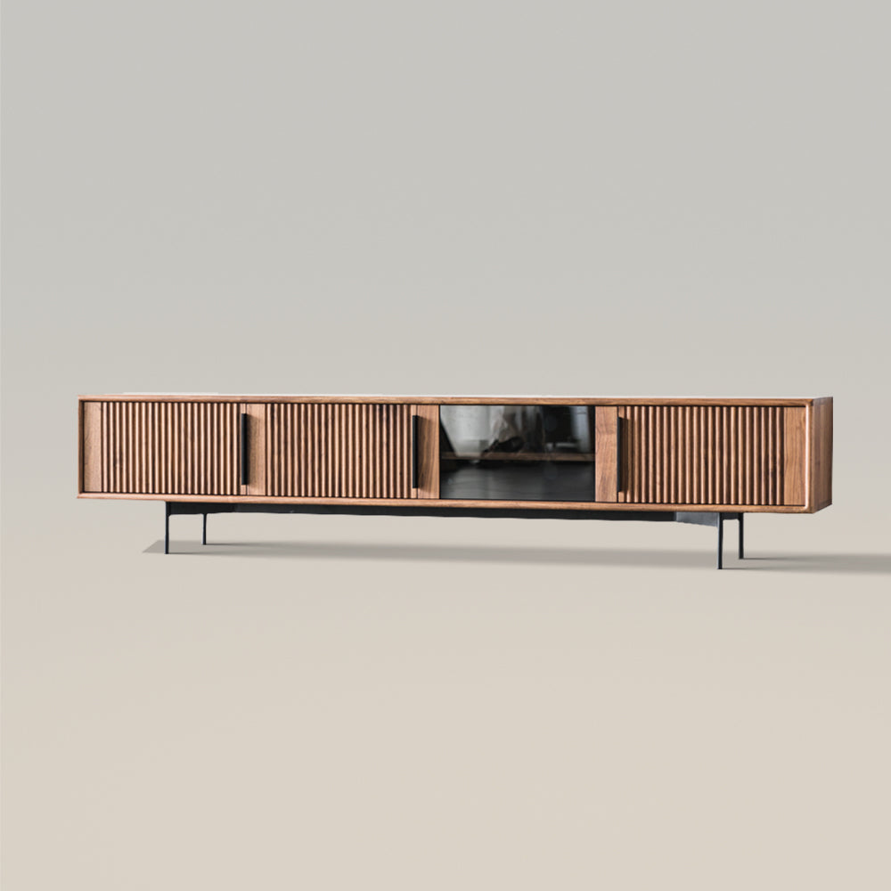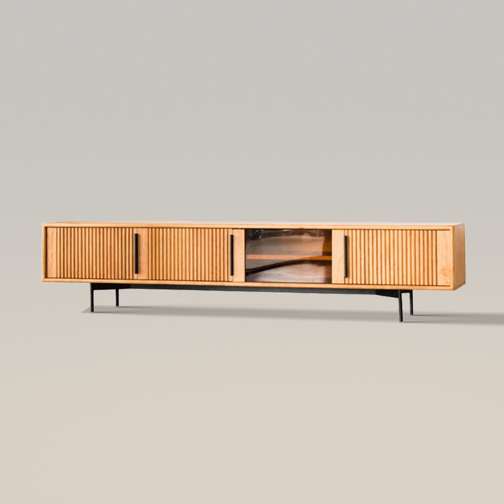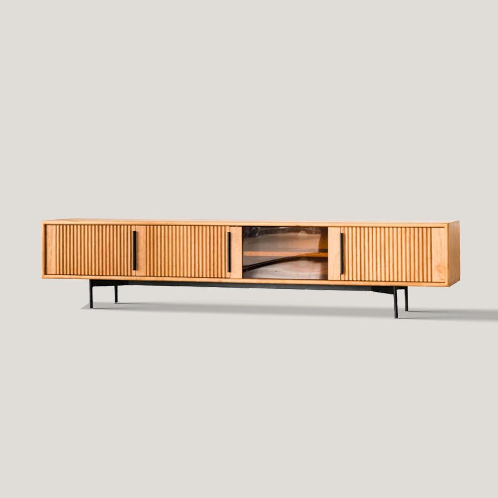 Nuestra consola de TV que ahorra espacio ayuda a que su hogar se sienta habitado y ordenado. Tablero para colocar su retrato familiar, adornos, plantas, etc. La puerta del gabinete que se abre a presión es fácil de abrir, pero ofrece un espacio aislado adicional para proteger su privacidad.