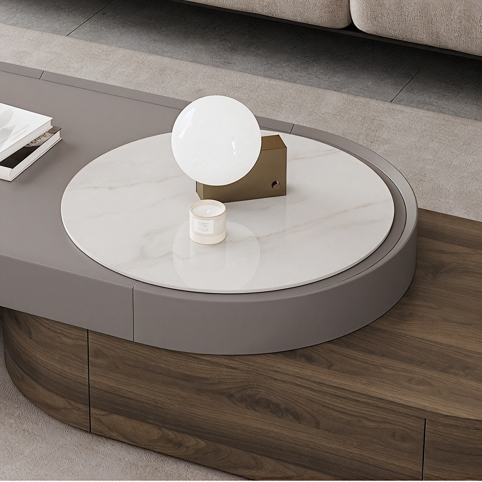 Lujosa mesa de piedra sinterizada : la superficie de piedra sinterizada de la mesa de café ofrece un aspecto elegante y de alta gama con una durabilidad notable, lo que la hace resistente a los arañazos, el calor y las manchas, perfecta para el uso diario en su sala de estar.