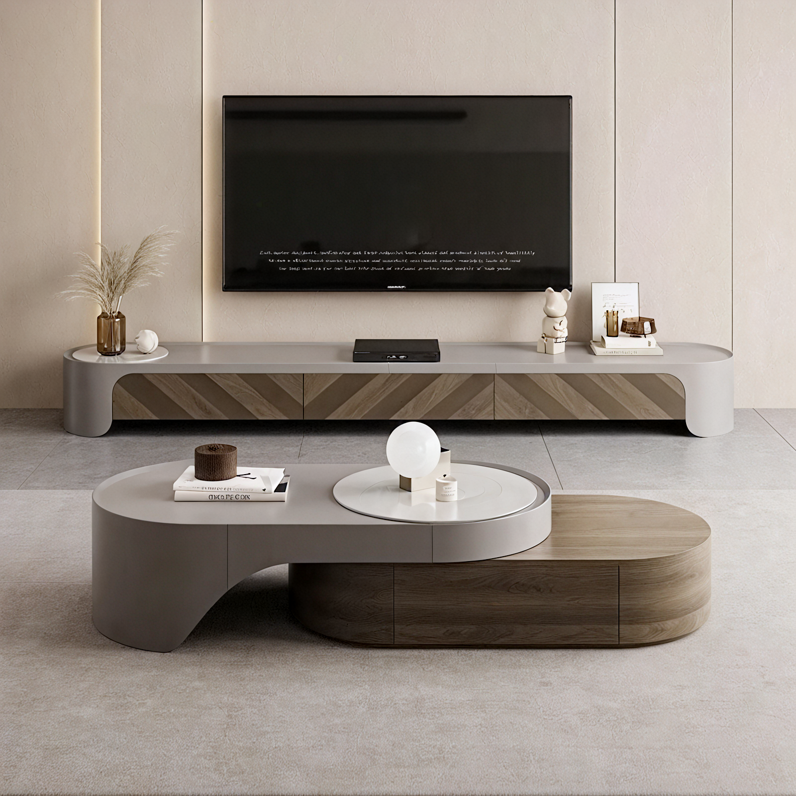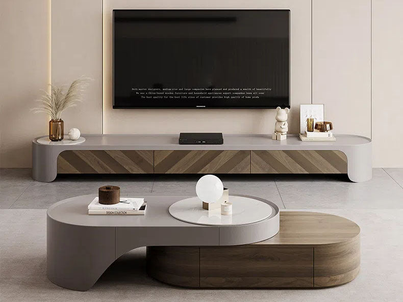 Diseño minimalista moderno : este conjunto de mesa de café y mueble de TV cuenta con líneas limpias y una estética minimalista, elevando sin esfuerzo su sala de estar con un toque contemporáneo que complementa una variedad de estilos de interiores.