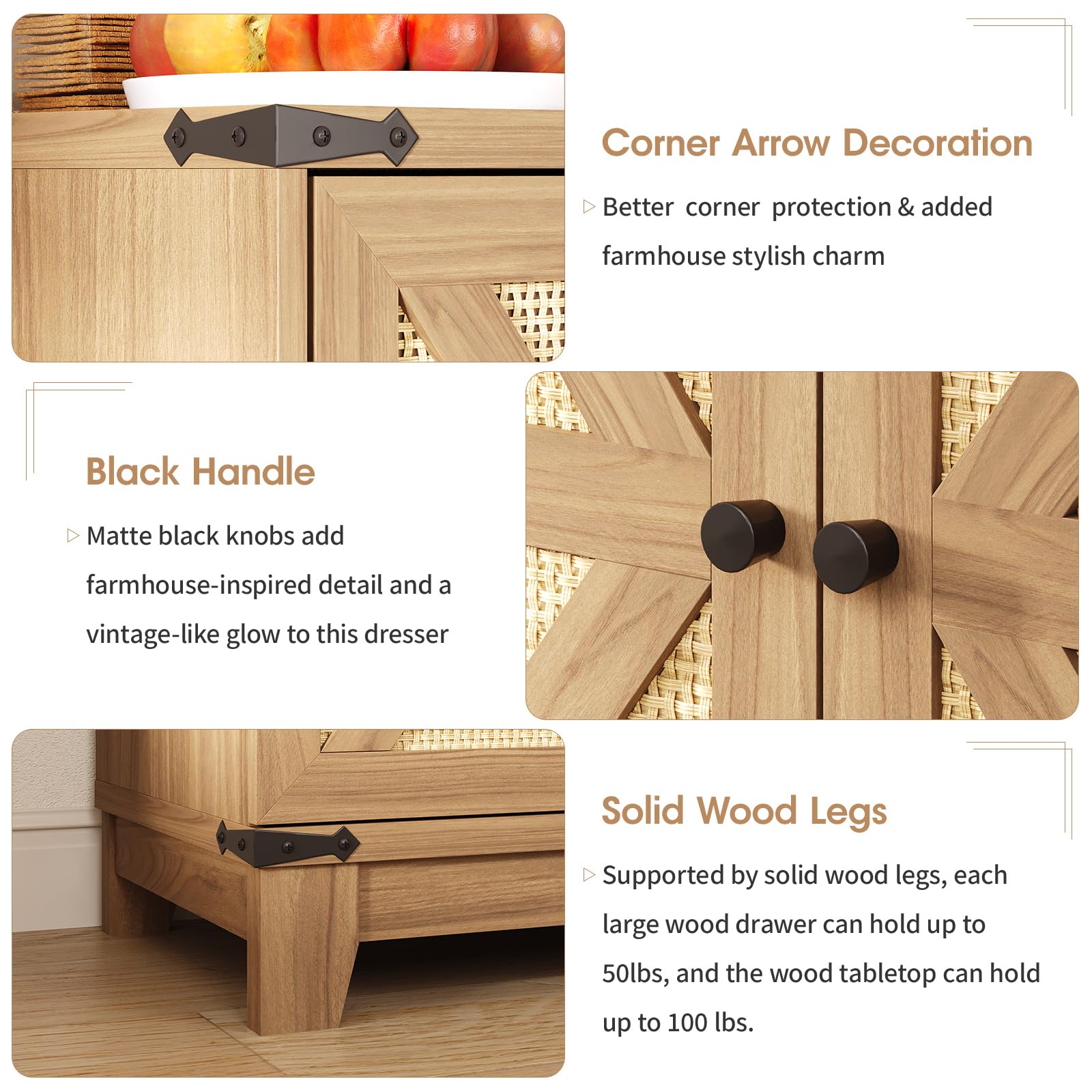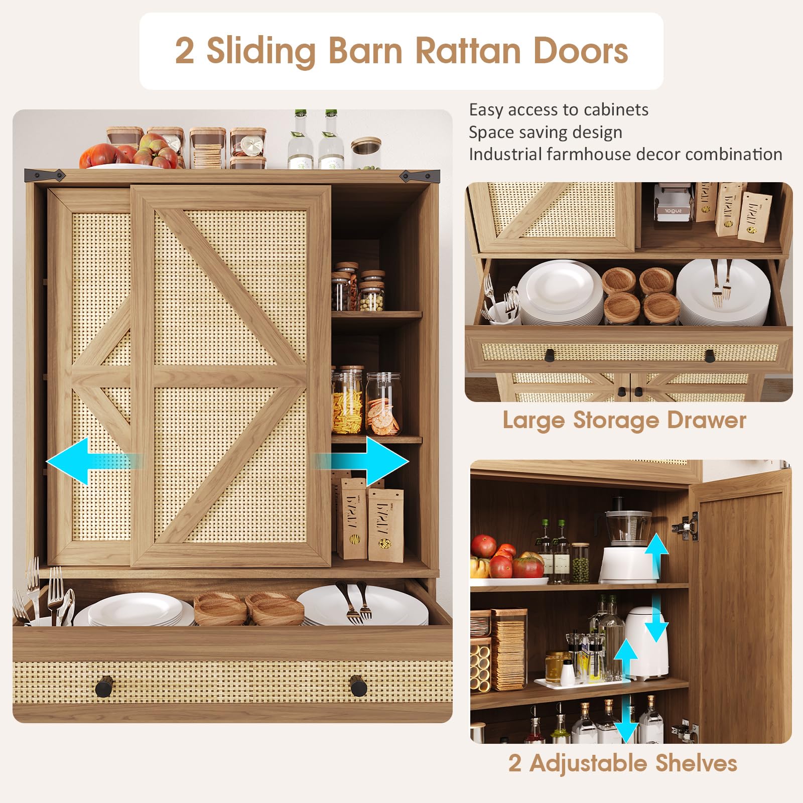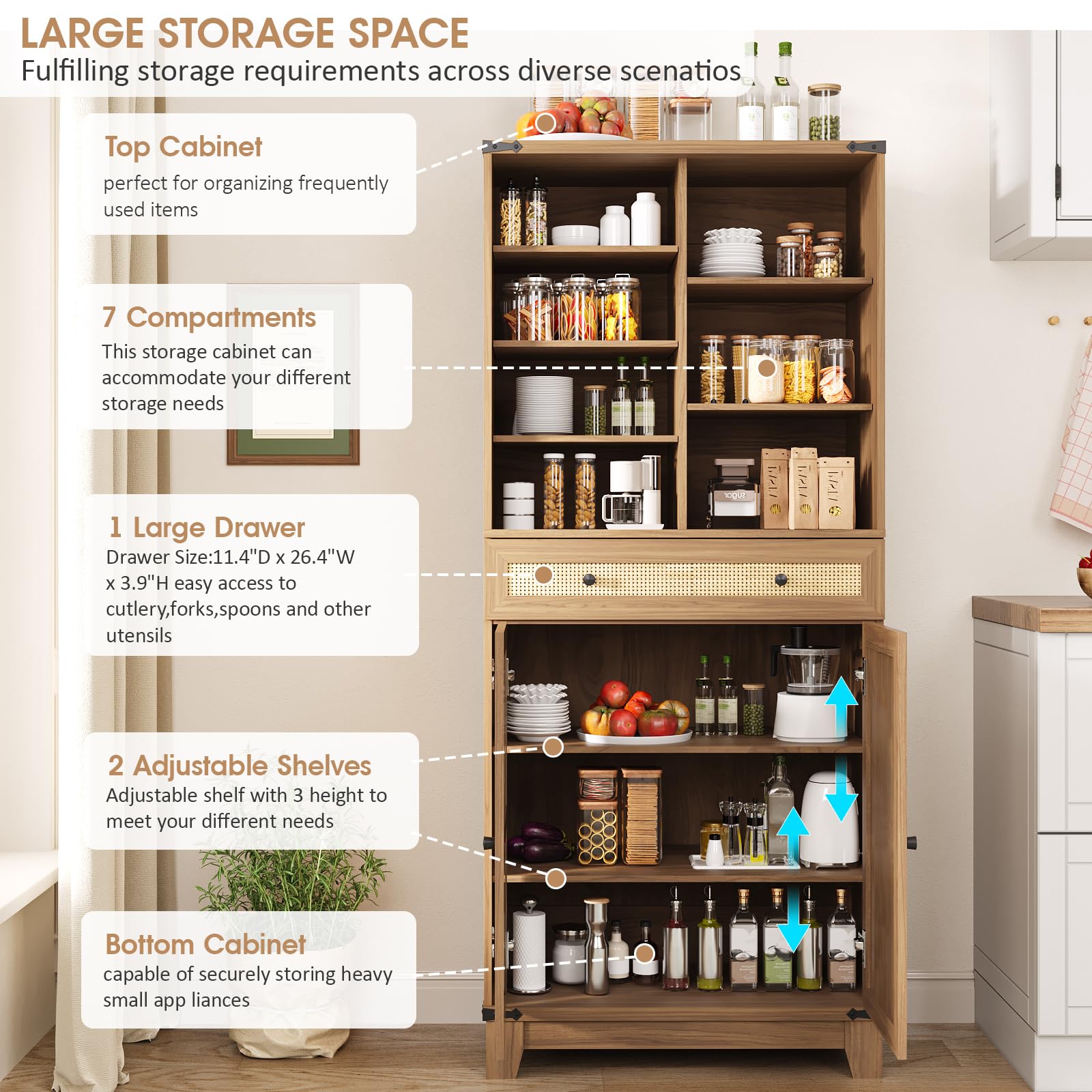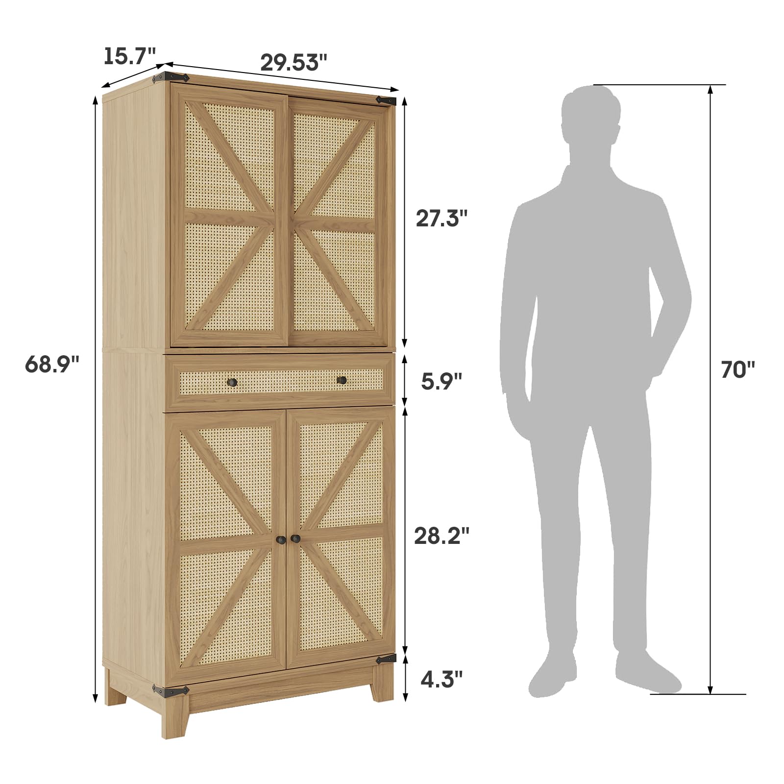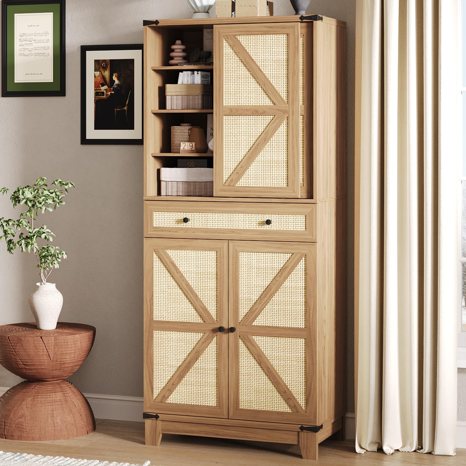 Alacena de ratán con estantes ajustables para almacenamiento de cocina