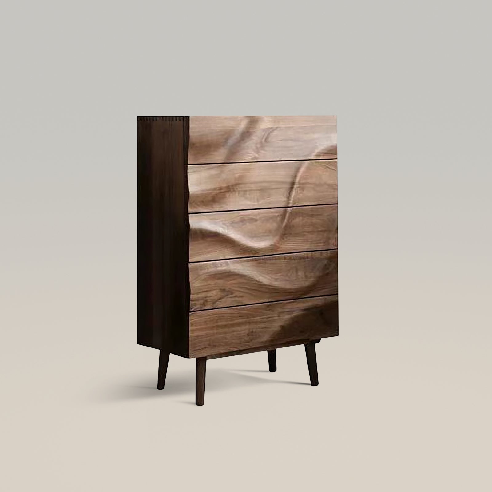 Dale un toque de elegancia rústica a tu hogar con nuestra cómoda con cajones. Esta cómoda, elaborada a mano por expertos con madera maciza de alta calidad, presenta un diseño ondulado único en sus cajones, que le da un aspecto distintivo y elegante. La veta natural de la madera realza su encanto, lo que la convierte en un complemento perfecto para cualquier dormitorio, sala de estar o pasillo.