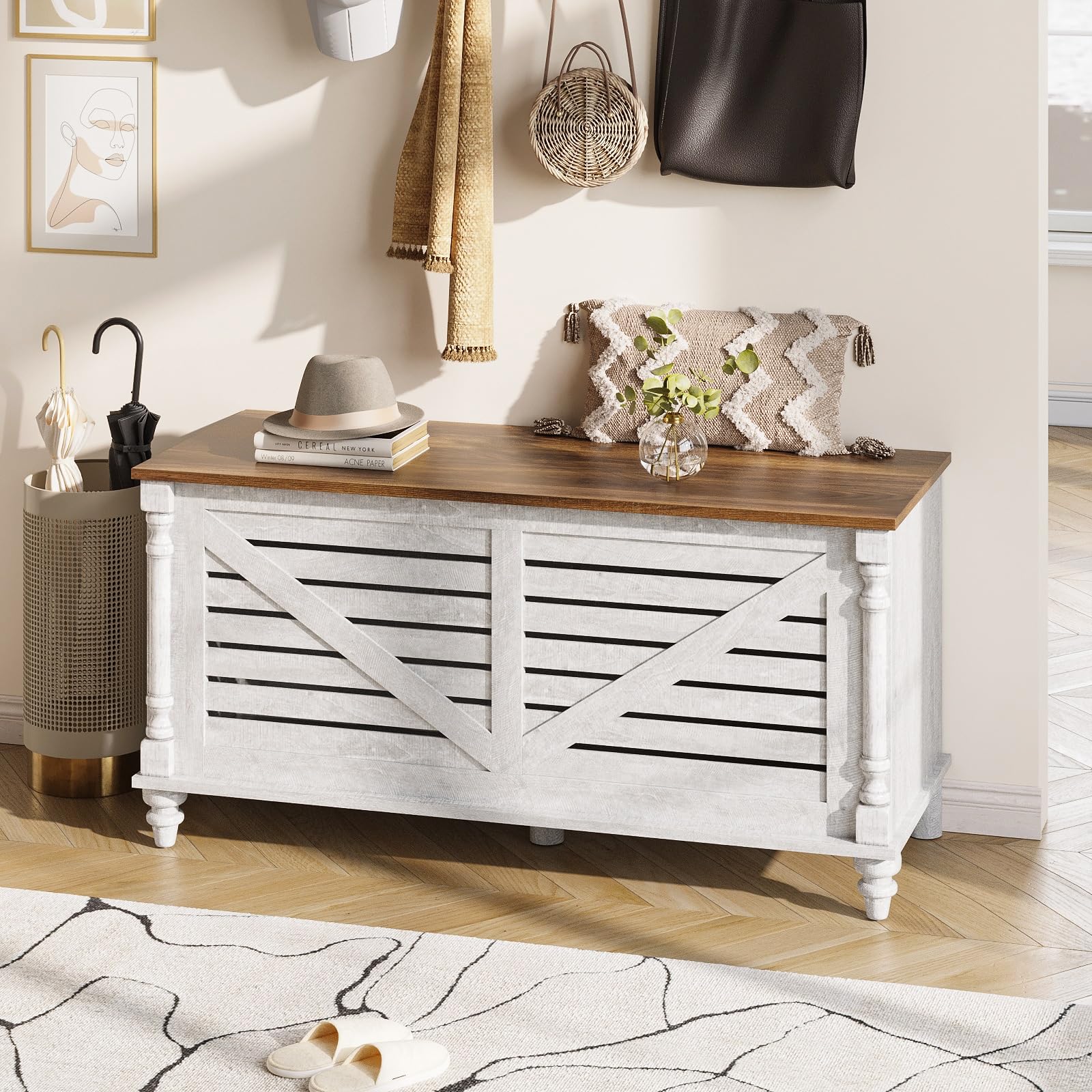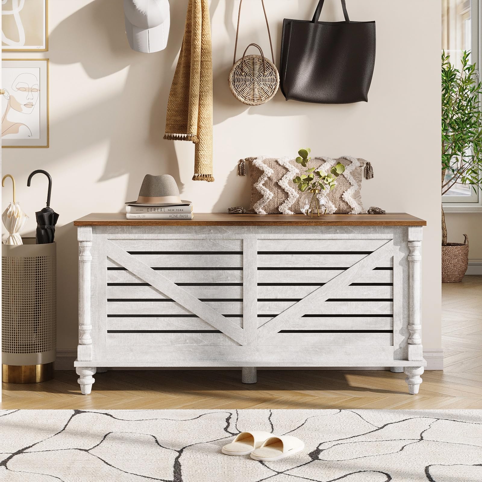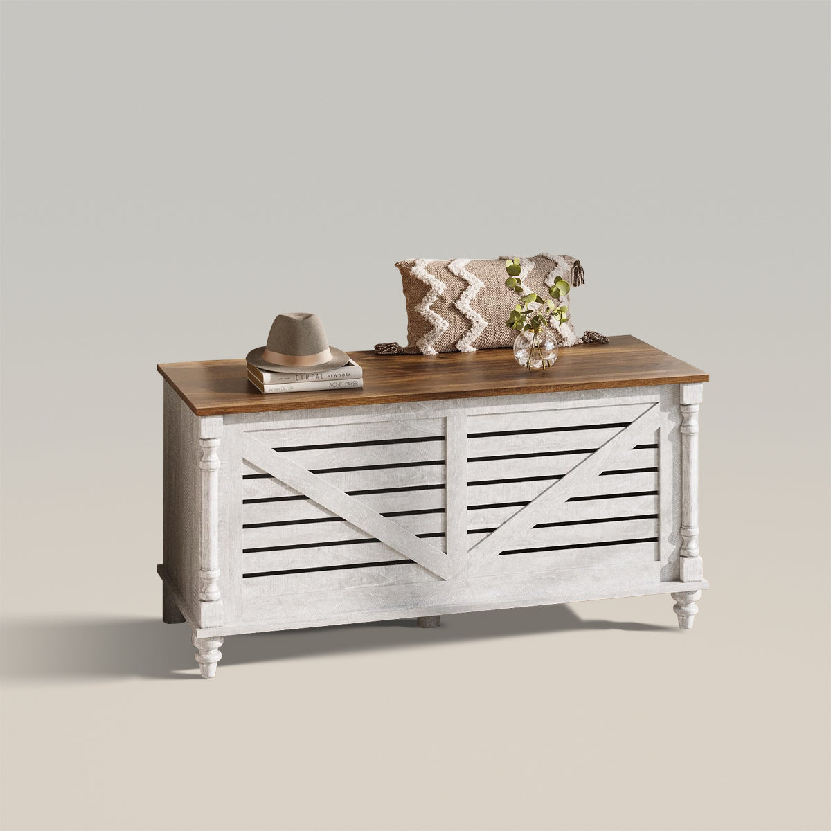 Baúl de almacenamiento para entrada con banco para zapatos y patas redondas de madera
