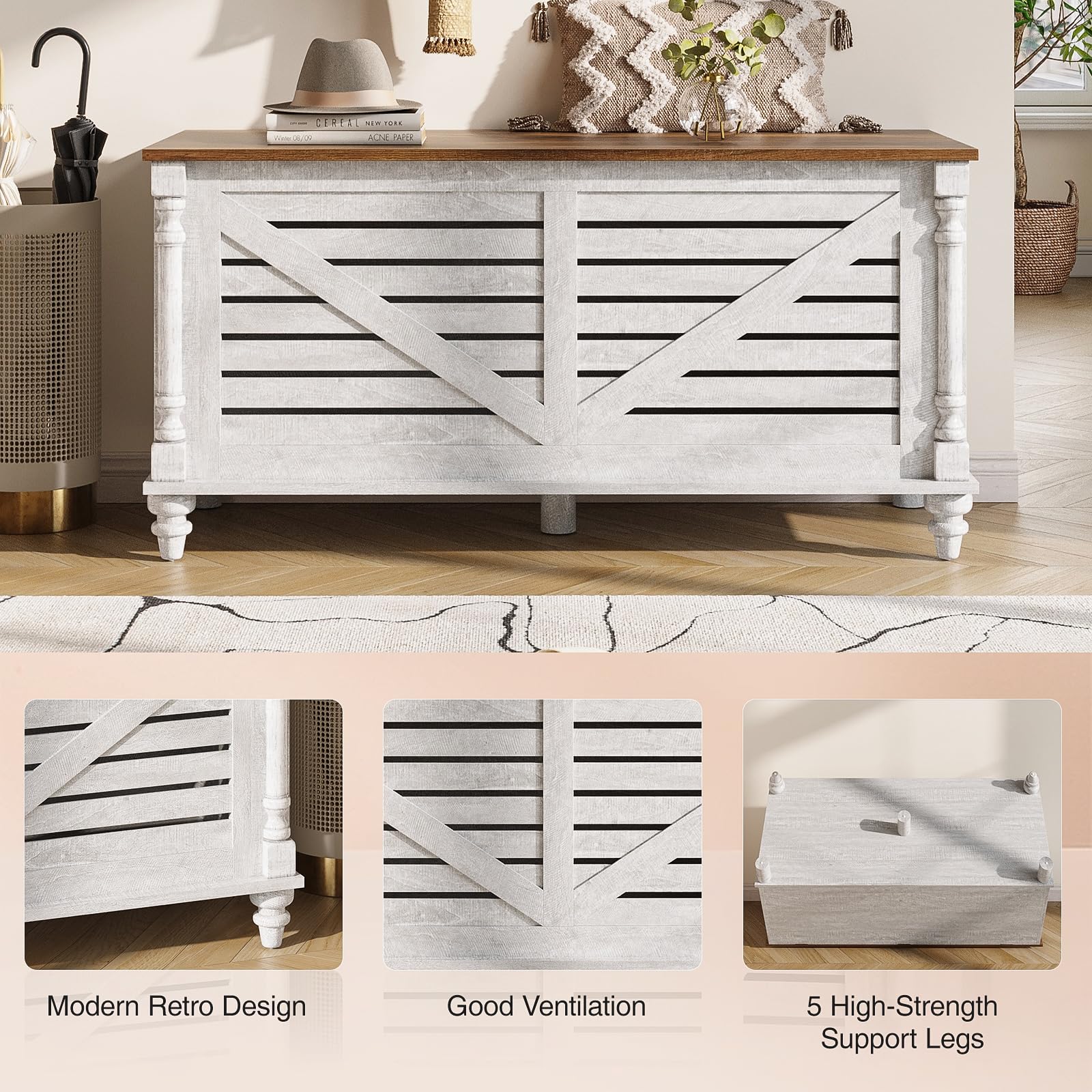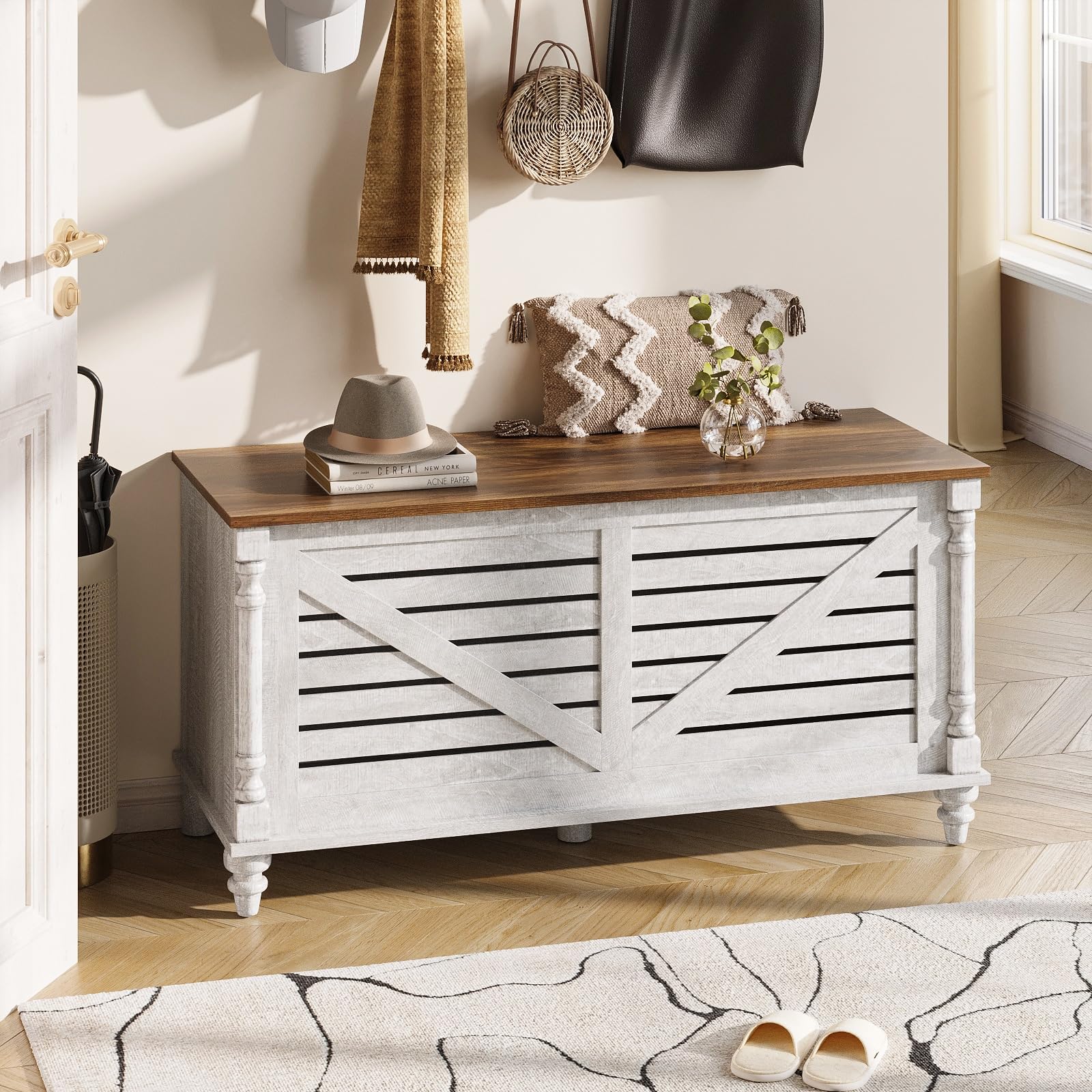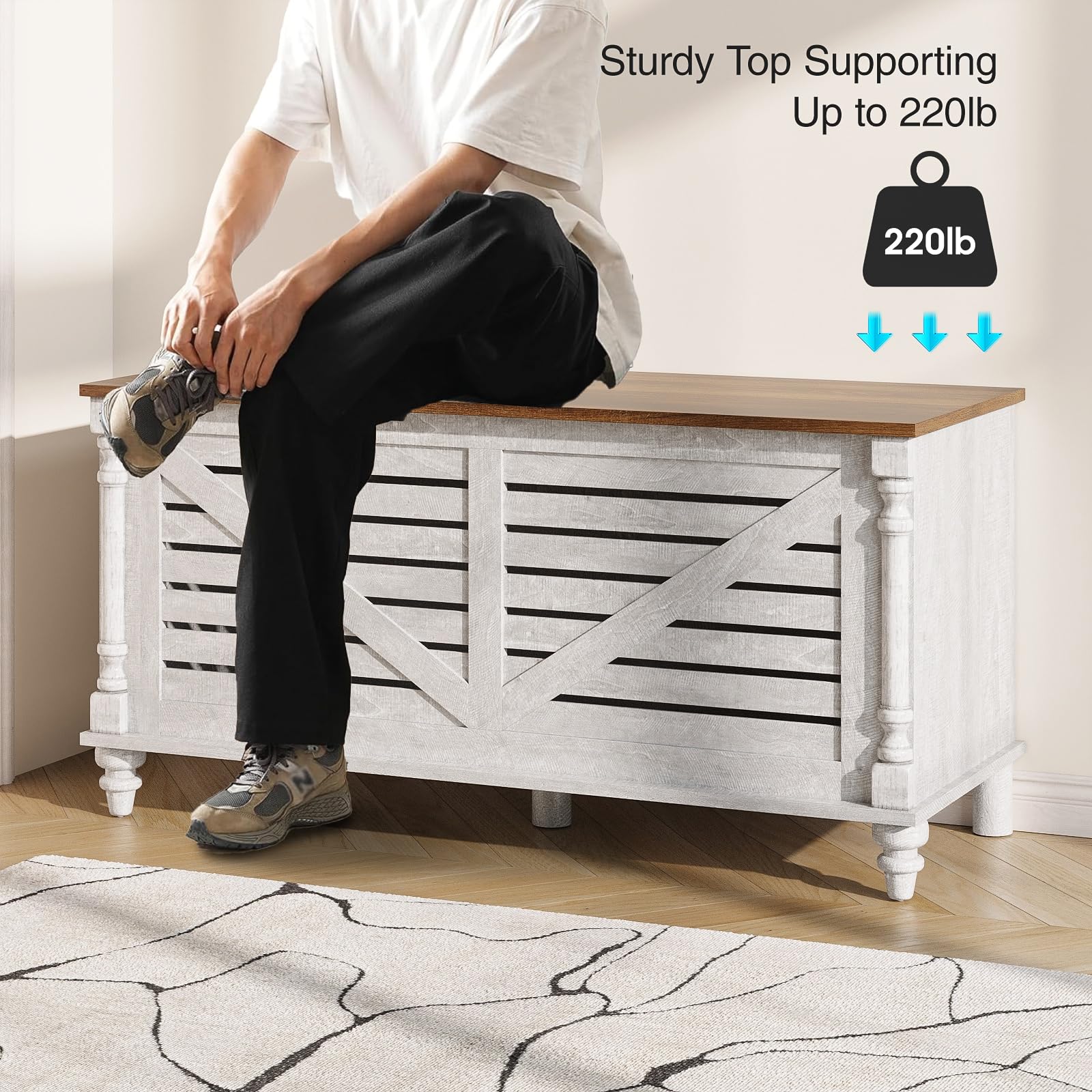 Baúl de almacenamiento para entrada con banco para zapatos y patas redondas de madera
