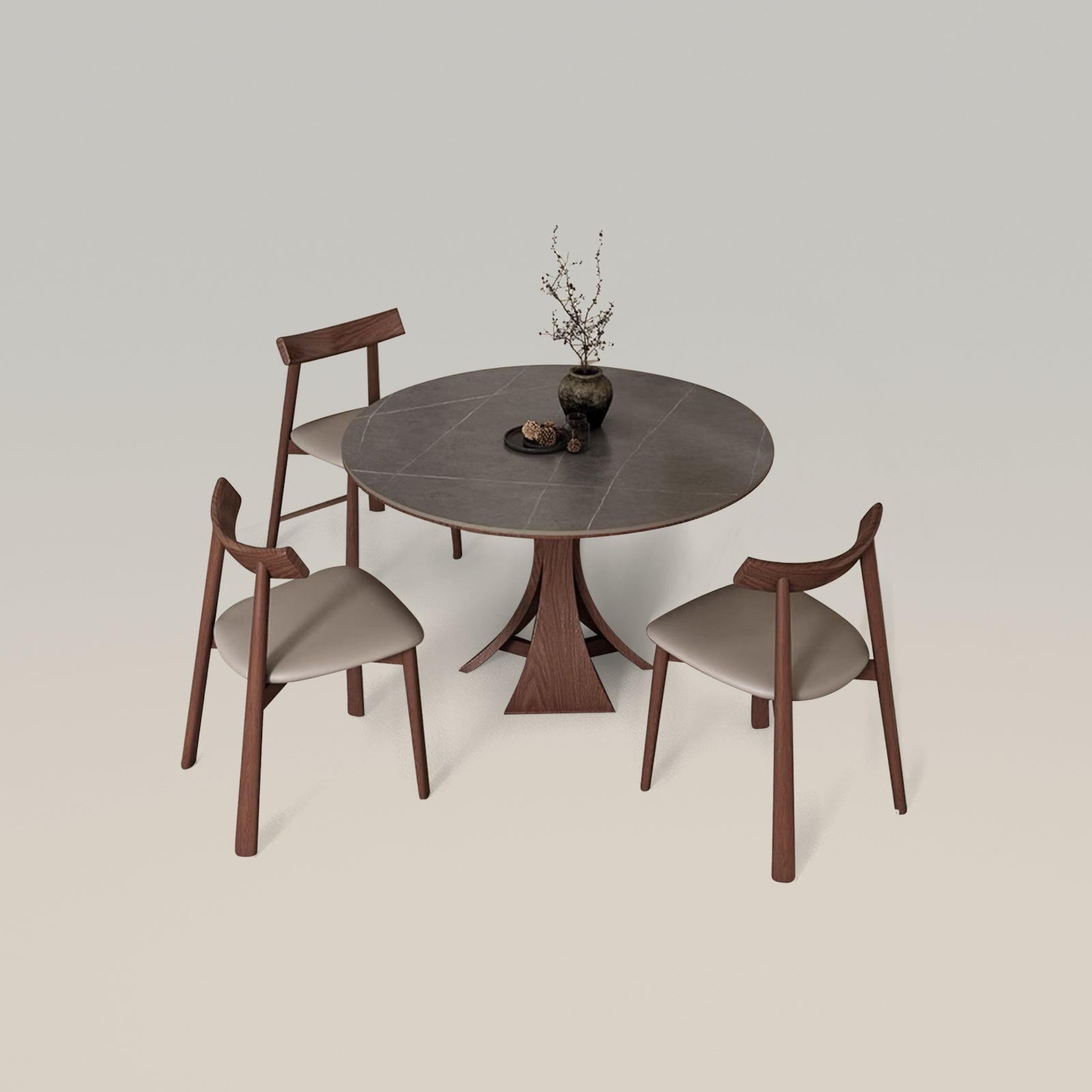 Elevate your dining experience with this captivating set featuring a unique cone shape, adorned in an alluring brushed gold finish. The sintered stone tabletop, meticulously crafted to emulate the opulence of marble, showcases exquisite patterns, creating a visually stunning centerpiece.?