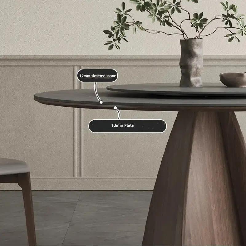 This Round Dining Table is constructed with high-quality materials to ensure durability and stability. The wood base provides excellent support and stability, ensuring that the table remains sturdy even during lively meals or gatherings. The gray sintered stone table top not only adds a touch of elegance but is also resistant to scratches and stains, making it a durable and long-lasting option for your dining space.?
