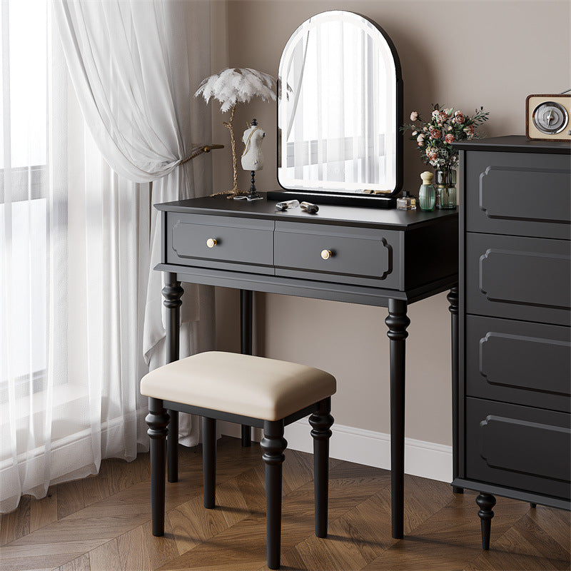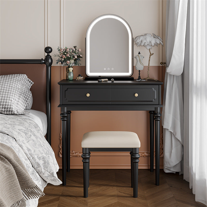 Spacious Storage: With two spacious drawers, this vanity set offers ample storage for all your beauty products, jewelry, and accessories. The drawers glide smoothly, making it easy to access your items.