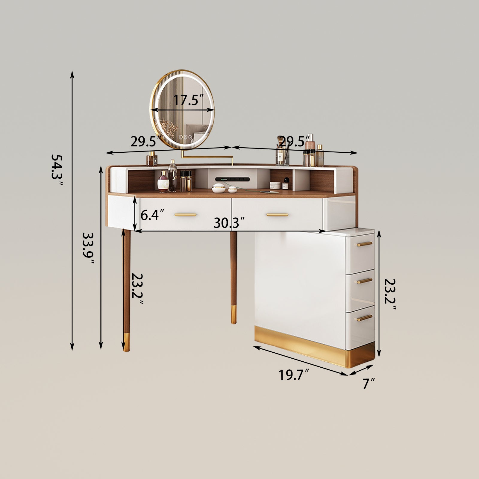 Multifunctional Layout: Featuring a smart and functional design, this vanity offers ample storage for makeup, skincare products, and accessories, making it both practical and space-efficient.