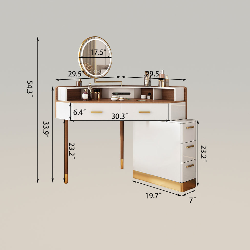 Smart LED Mirror: Equipped with an intelligent LED mirror, the vanity provides adjustable lighting to suit different makeup needs, ensuring perfect visibility whether you're prepping for day or night.