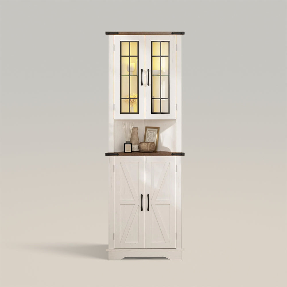 Farmhouse Rustic Style Corner Cabinet---Farmhouse cabinet with corner shelf, gives a charming rustic feel, antique white with rustic oak color, more fit for your room.