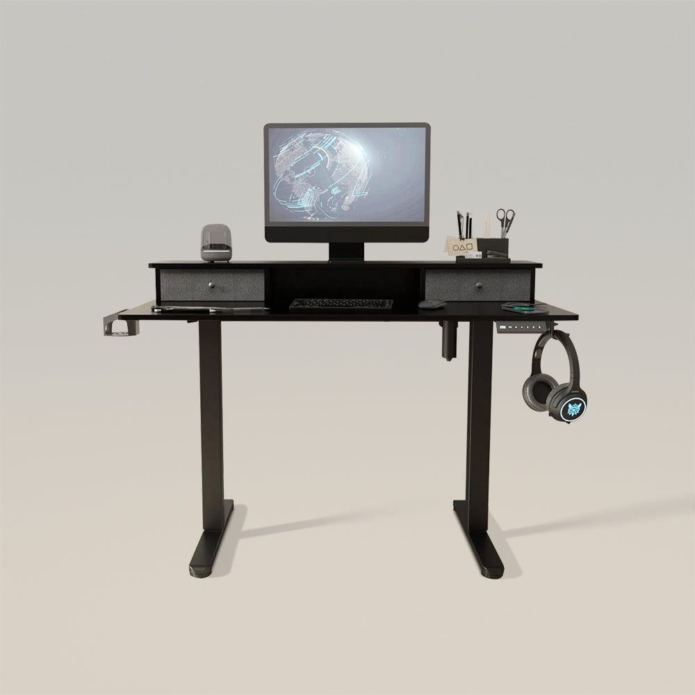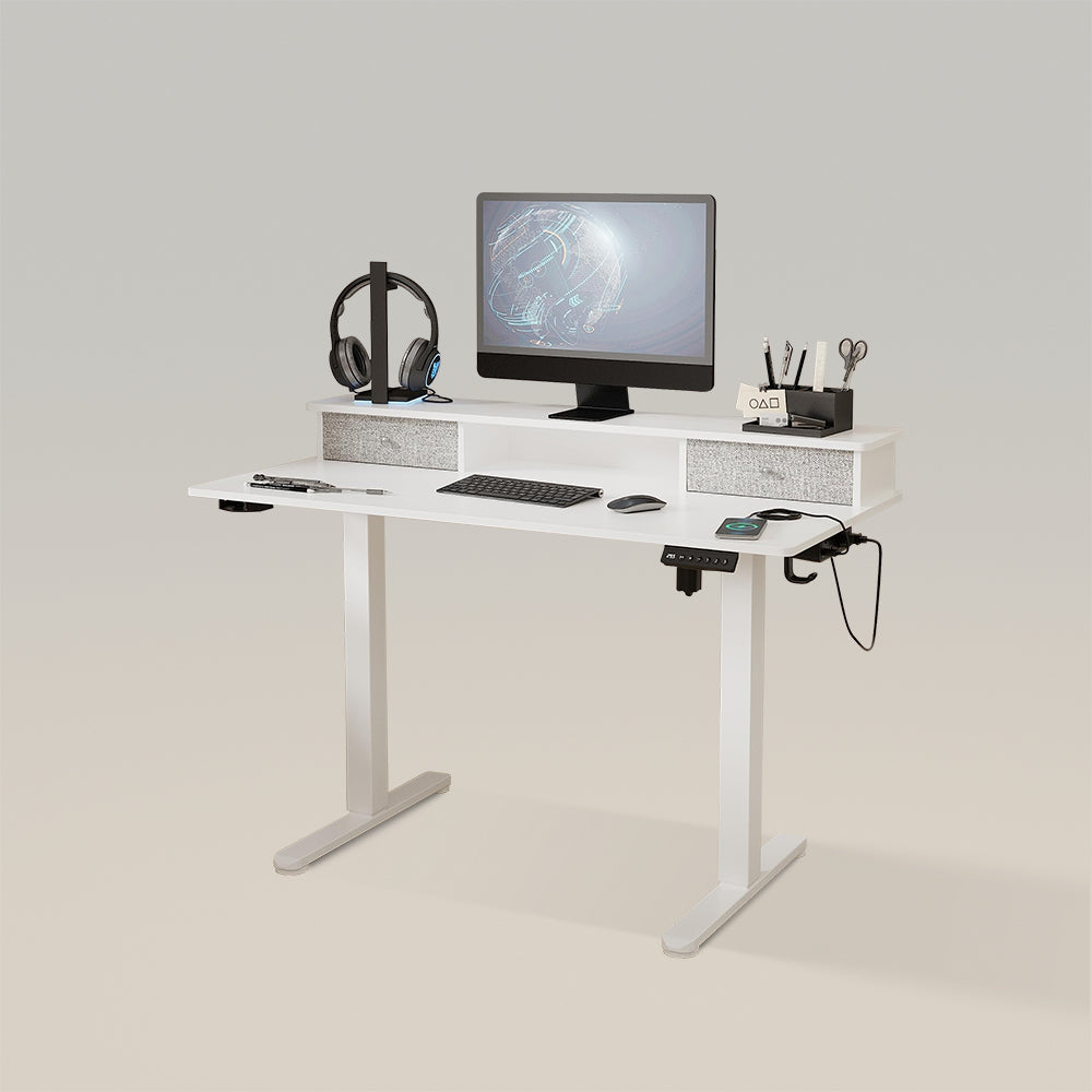 ADJUSTABLE TABLE WITH DOUBLE DRAWER- The sit to stand desk with storage shelf with 2 drawers. Provide excellent storage for your desktop. Let you work and play without being affected by desktop chaos. Work comfortably and play happily.