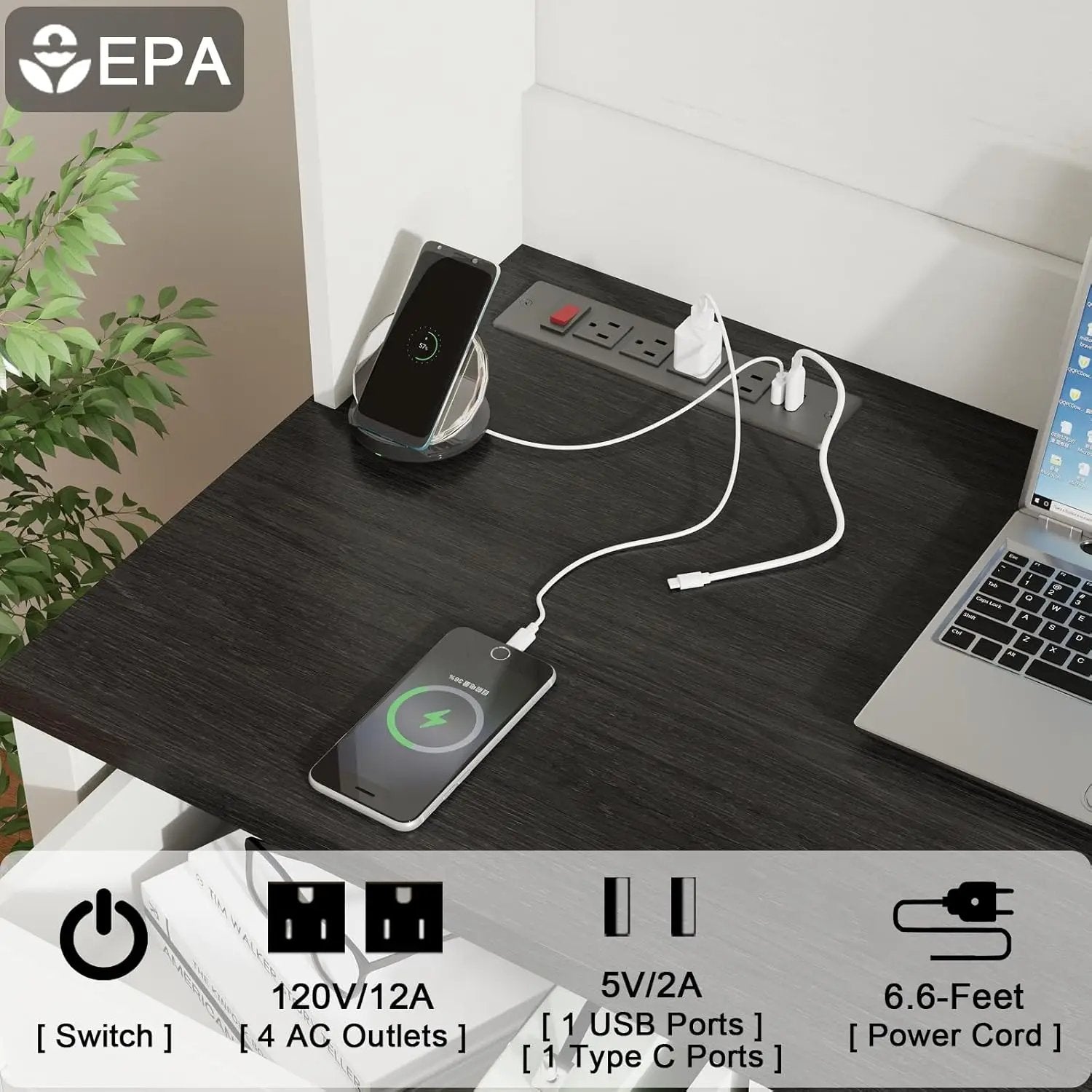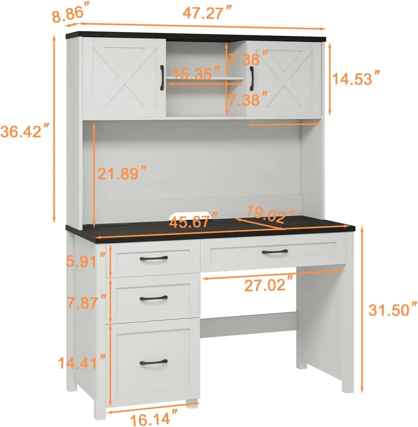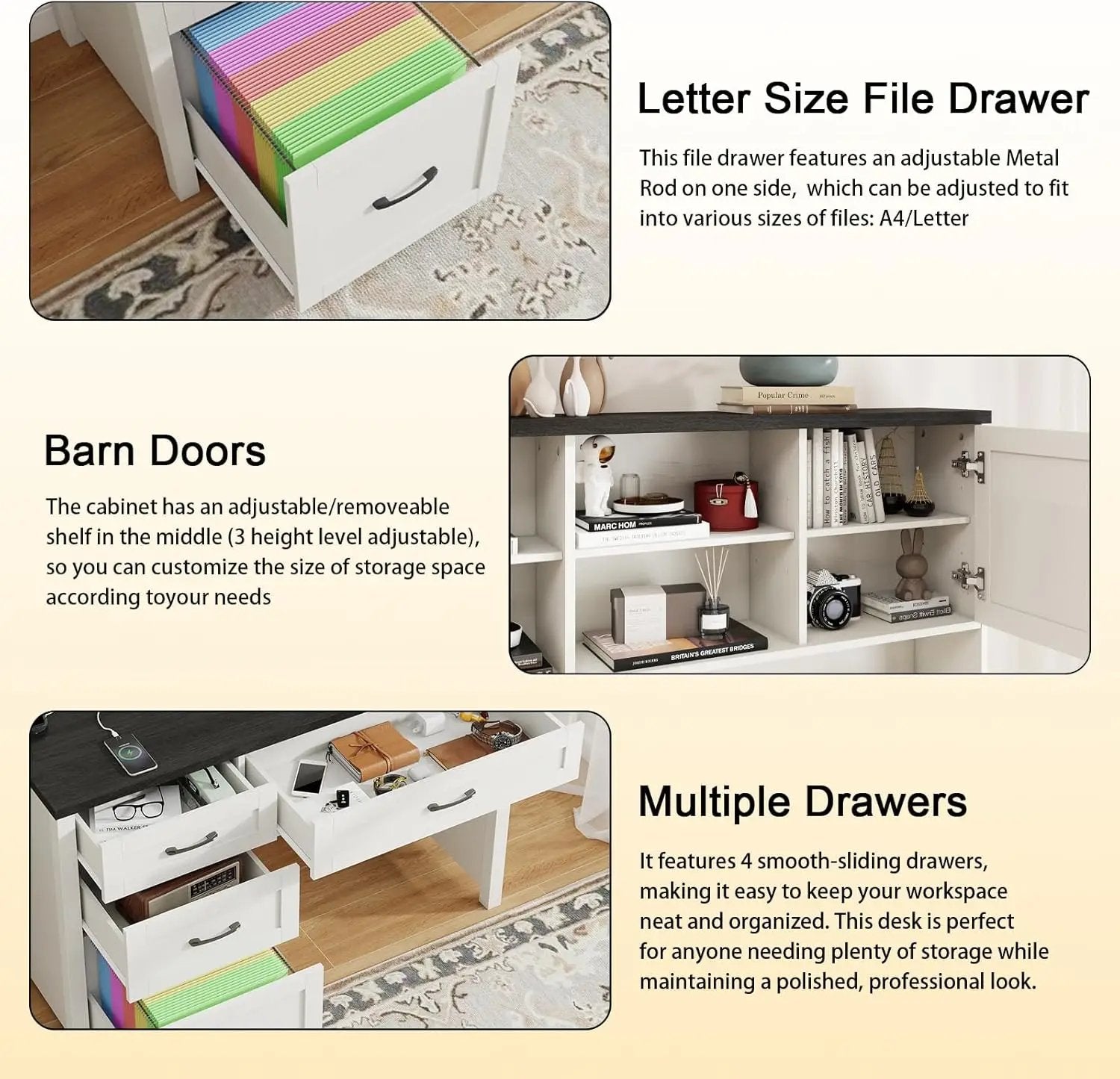 Farmhouse 67inch Executive Desk with 4 Drawers and LED Light