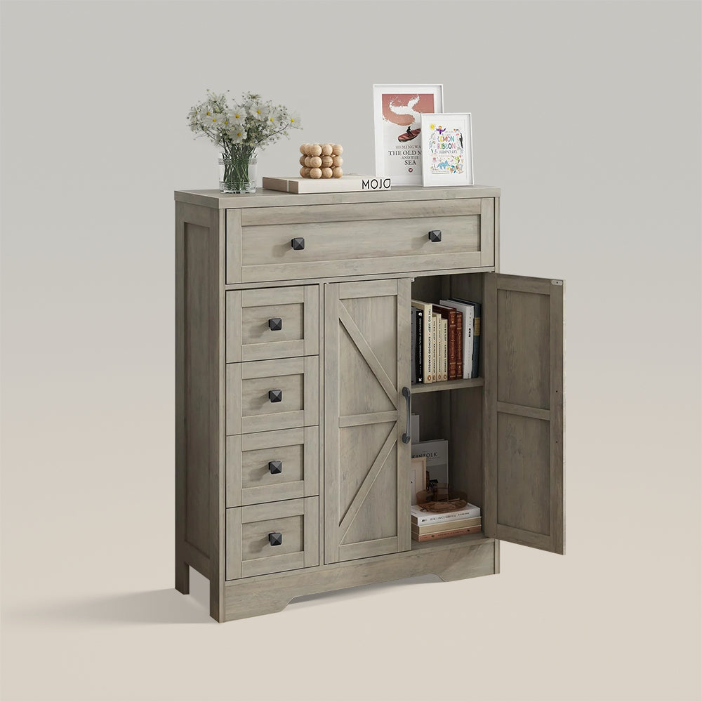 Farmhouse Storage Cabinet with 2 Doors and 5 Drawers