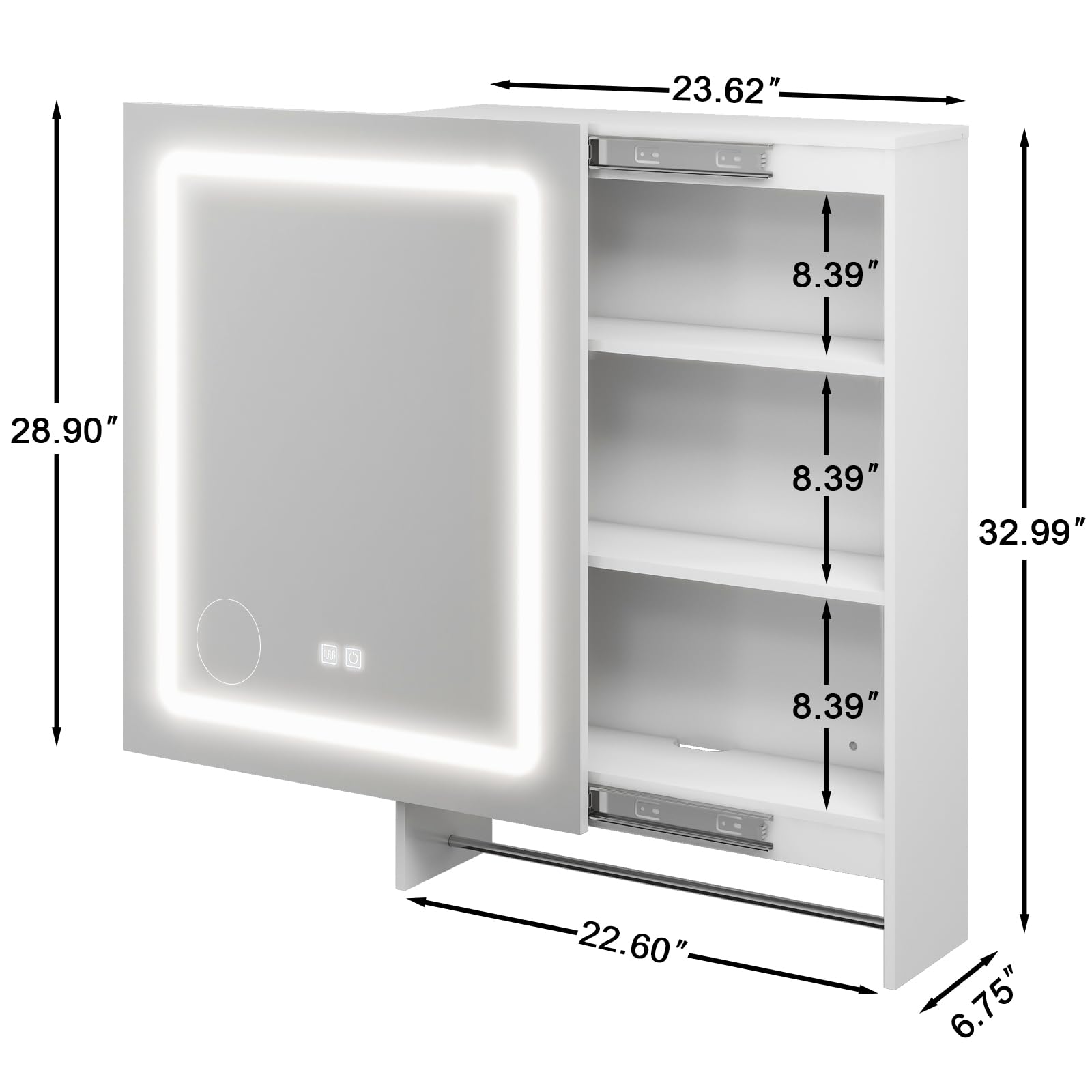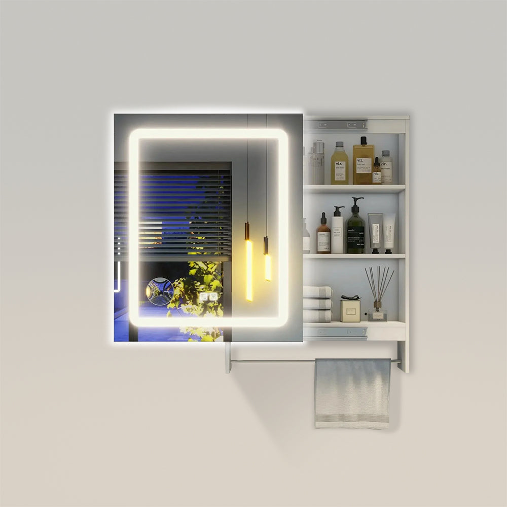 Towel Bar Convenience---Experience ultimate convenience with our seamlessly integrated towel bar. Keeping your towels within arm's reach, it complements the sleek design of our mirror cabinet while adding a touch of practicality to your space, ensuring that your essentials are always close at hand when you need them most.