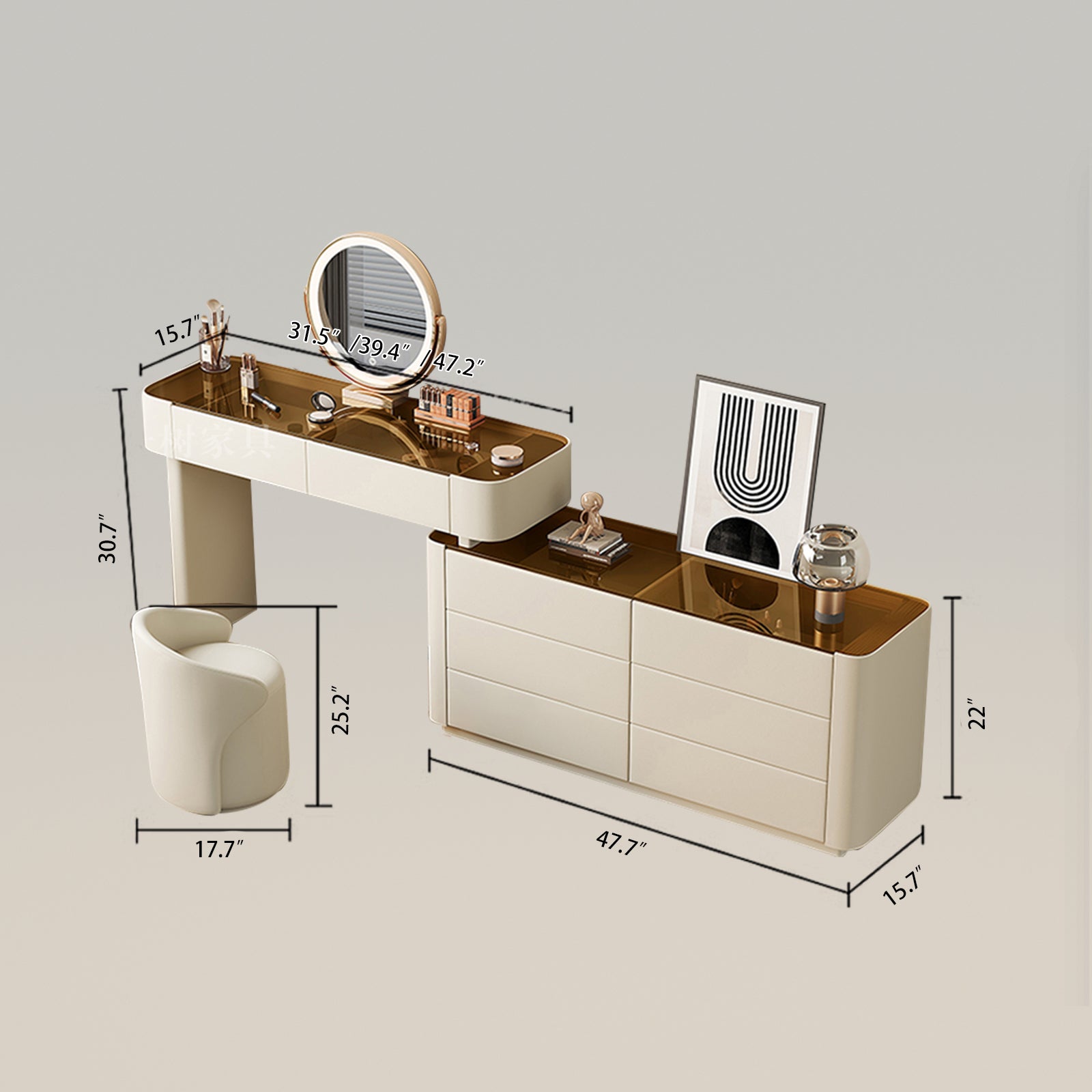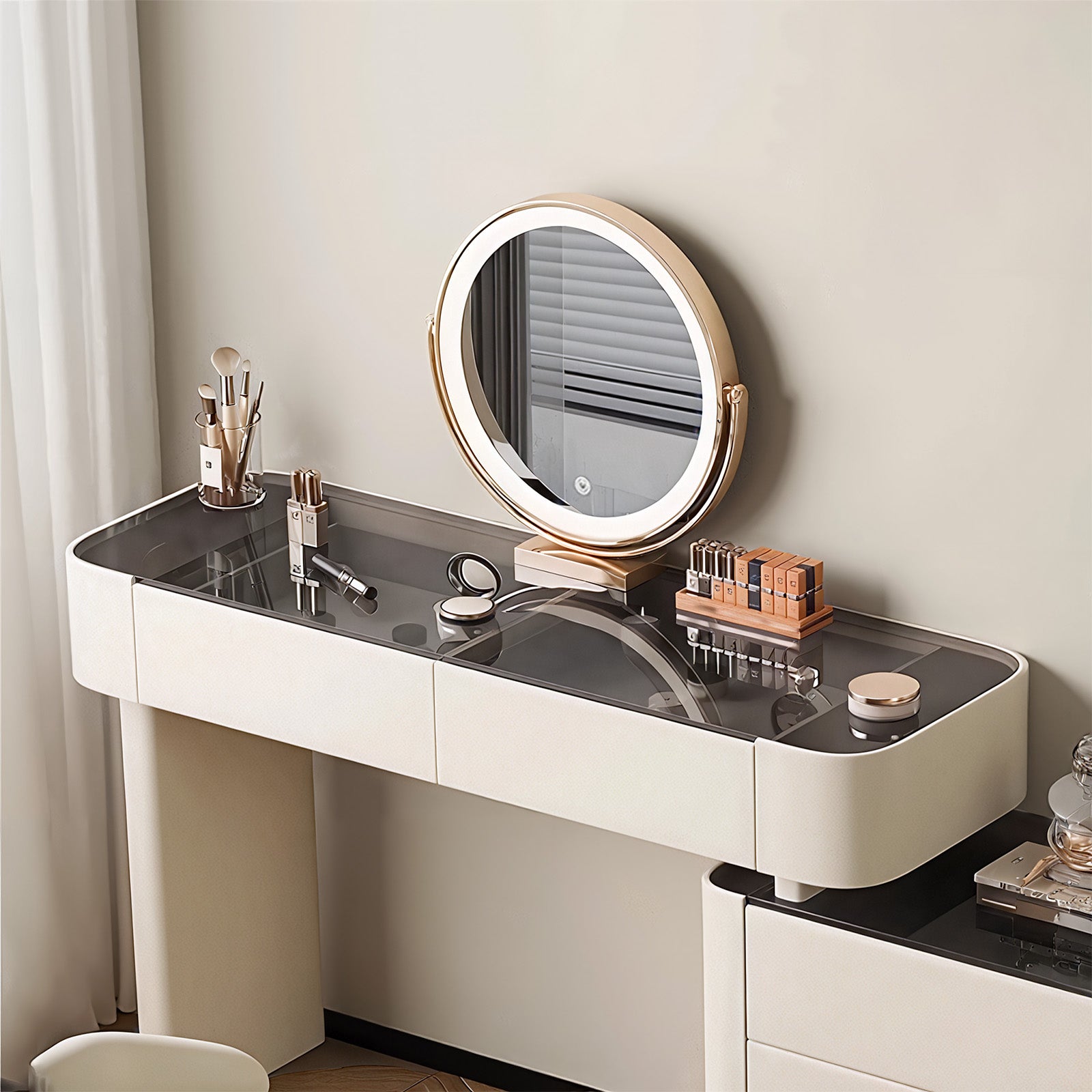 The built-in drawers provide generous storage space for your makeup, skincare products, and accessories, helping you keep everything neatly organized and within reach. Ideal for those who need extra storage in a small space.