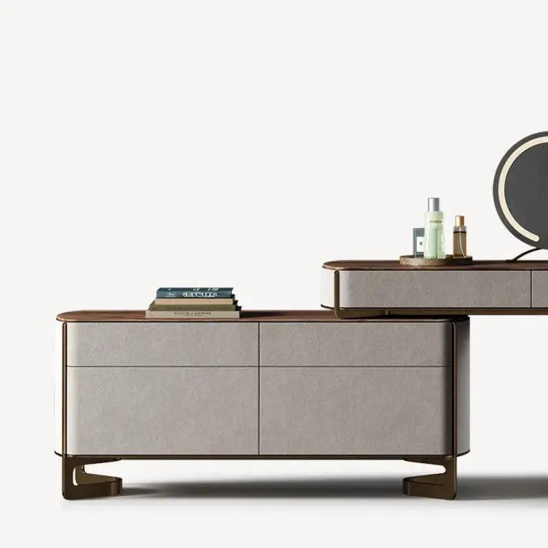 Modern makeup dressing table features a spacious desktop and 4 solid wood-framed drawers with a simple and stylish design, keeping your cosmetics, skincare products, and beauty items neatly organized.