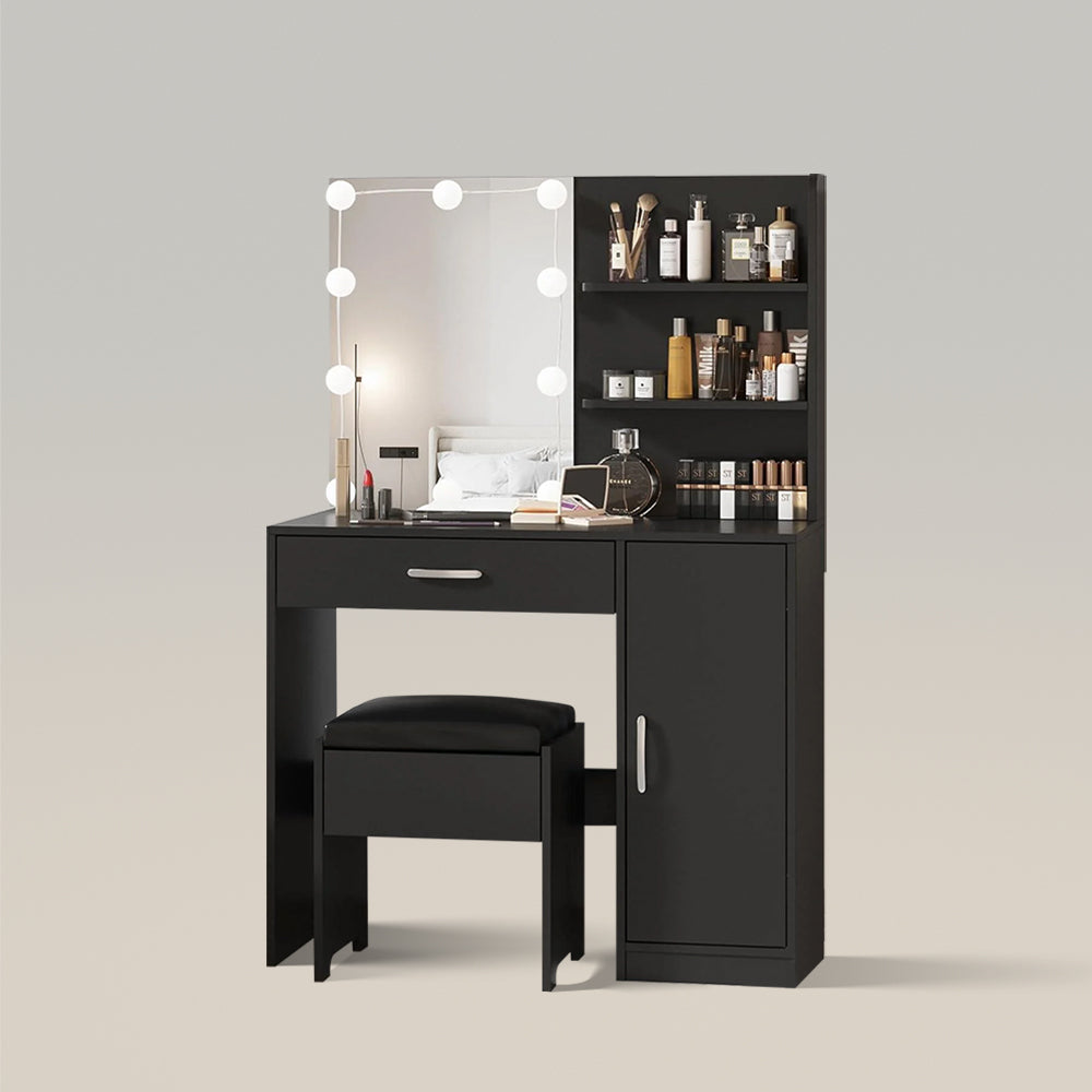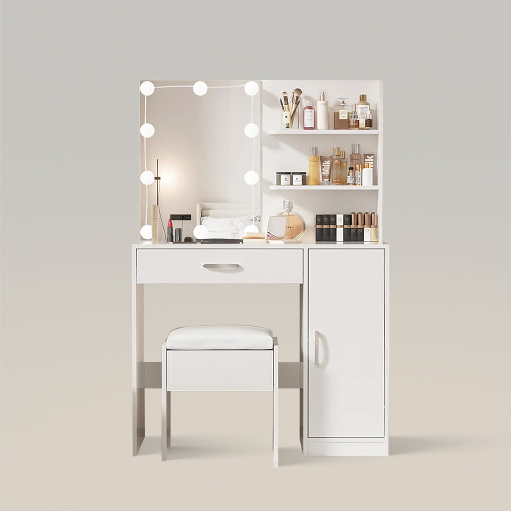 COLOR & BRIGHTNESS ADJUSTABLE LIGHT- Equipped with the 10-bulb Light, Vabches vanity set provides you with super-bright lighting conditions, giving you the makeup environment of Hollywood dressing rooms. The light is brightness adjustable, with 3 different color moods, so you can choose the brightness to meet your needs.