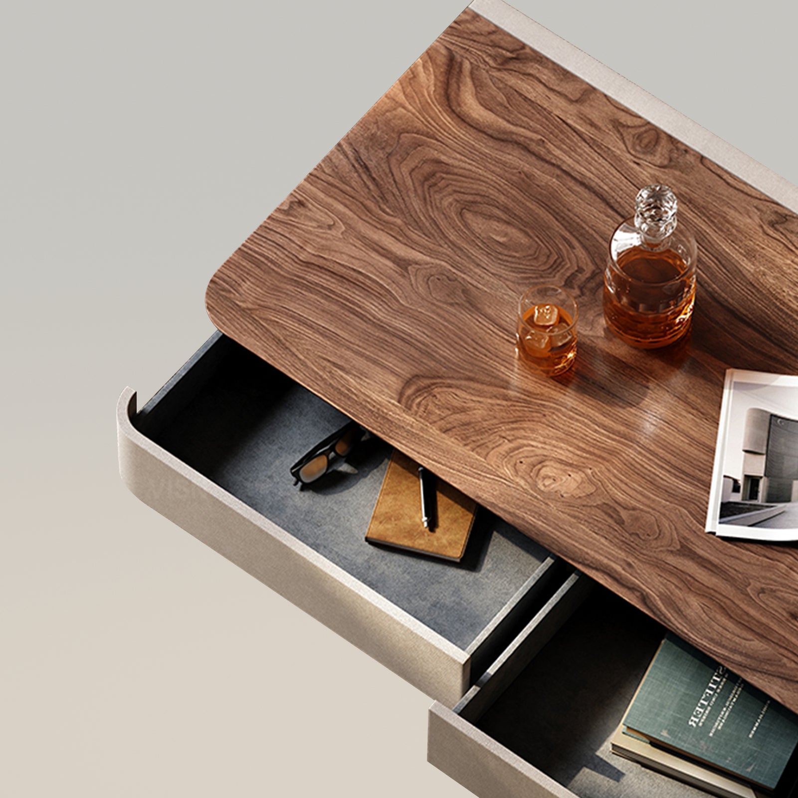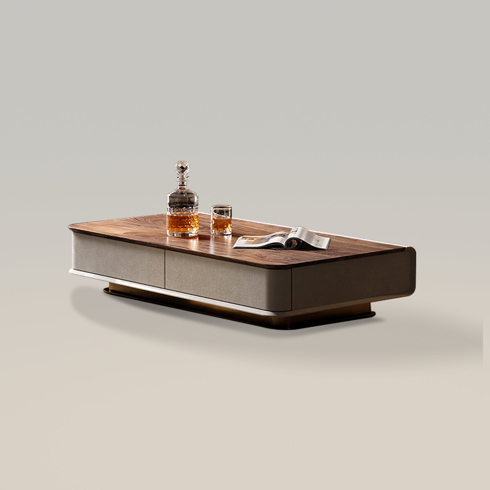 Minimalist wooden style combines simple appeal with a clean modern design.With two large capacity drawers, this multi functional coffee table can store everything. Clean lines combined with rustic brown finishes and gold integrated one table leg make it well integrated with other furniture and complement each other.