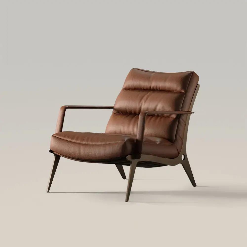 This accent chair wide armchairs features low-profile seat, splayed legs and retro brown finish for a stylish mid-century modern look. Slightly curved armrest contrasts with the straight silhouette of the seat, they will easily match a variety of home styles.