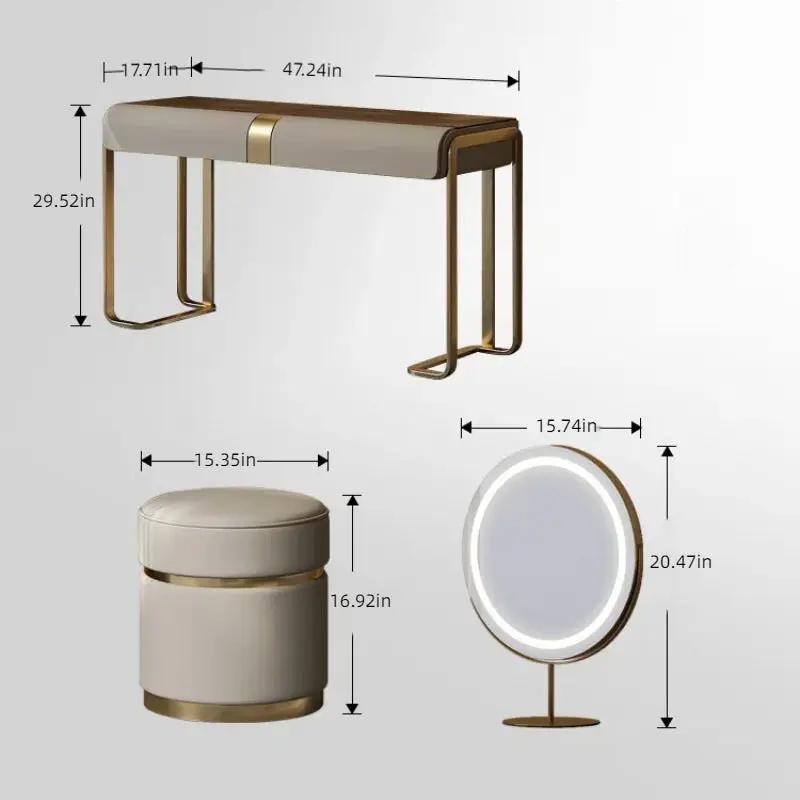 Elevate your daily beauty routine with our exquisite makeup vanity set, complete with a mirror enhanced by versatile LED light strips. Effortlessly transition between three adjustable colors to complement your unique beauty needs, providing optimal illumination both day and night in the comfort of your bedroom.