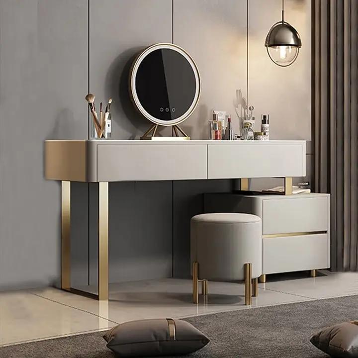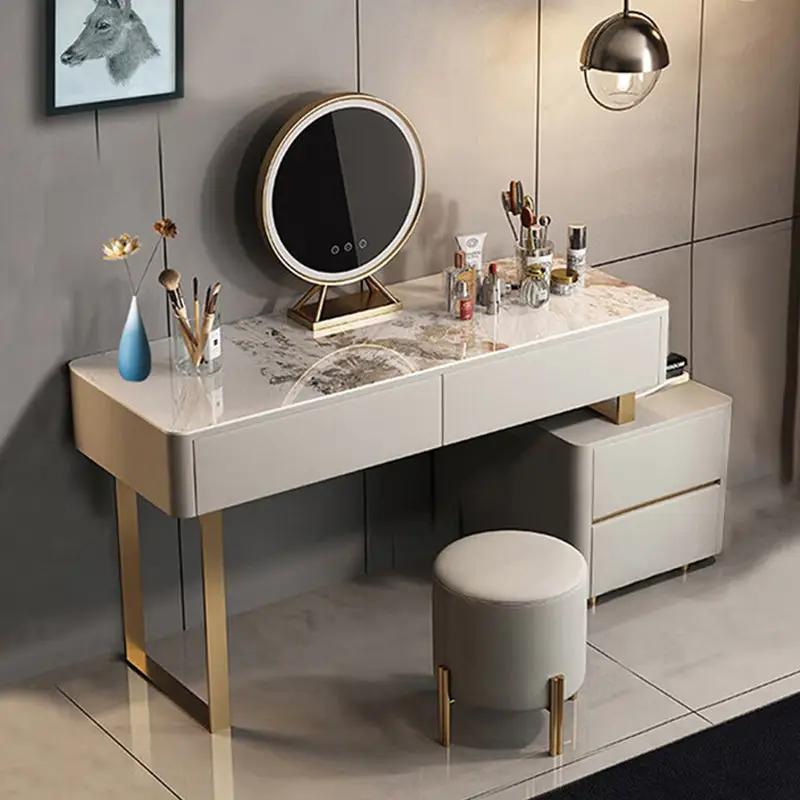This designer makeup table seamlessly combines elegance and practicality, featuring a spacious design that caters to all your storage needs.