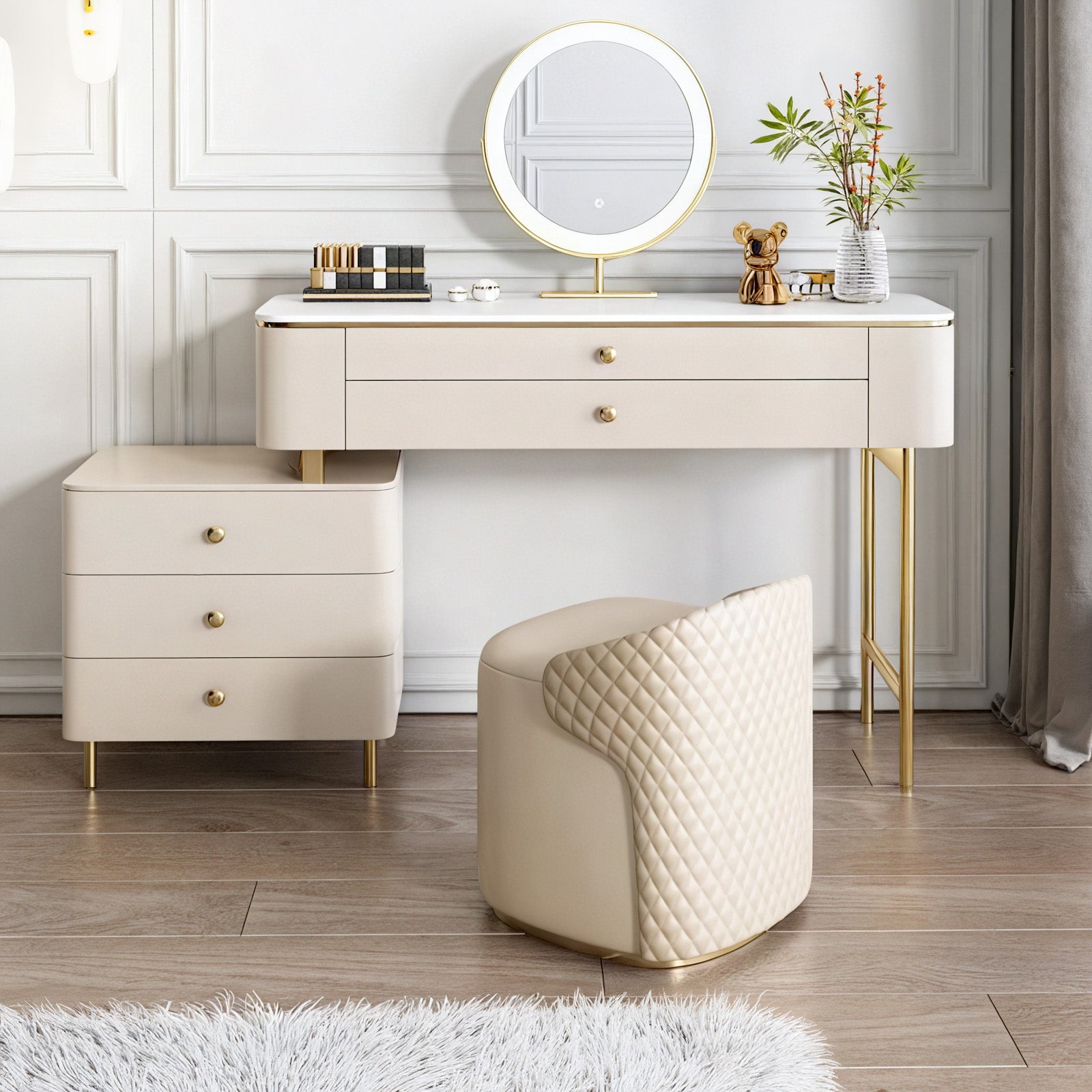 Designed with built-in storage cabinets and drawers, this vanity offers ample space to organize makeup, skincare, and beauty essentials, keeping your vanity area clutter-free and streamlined.
