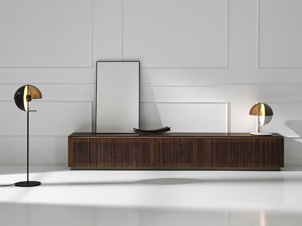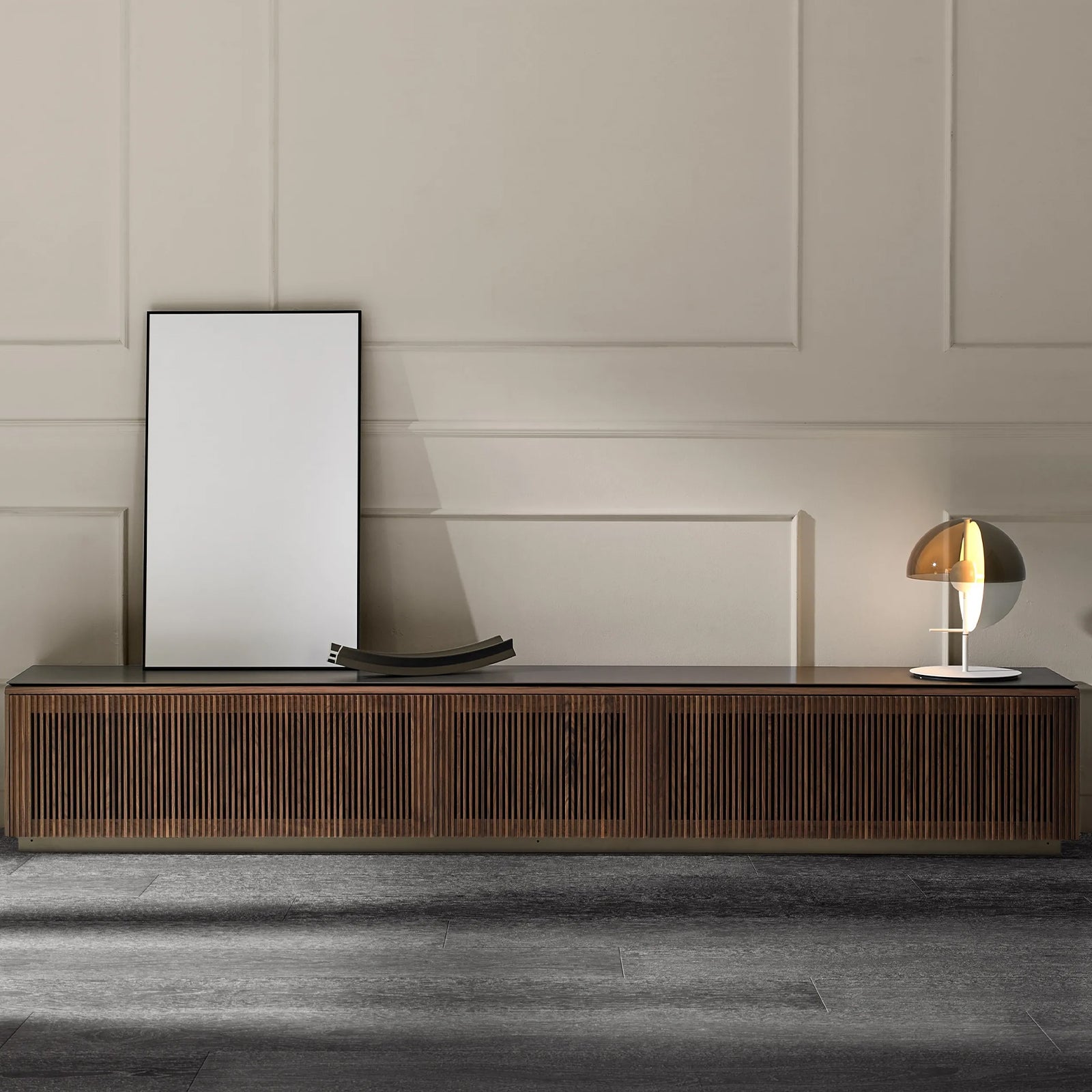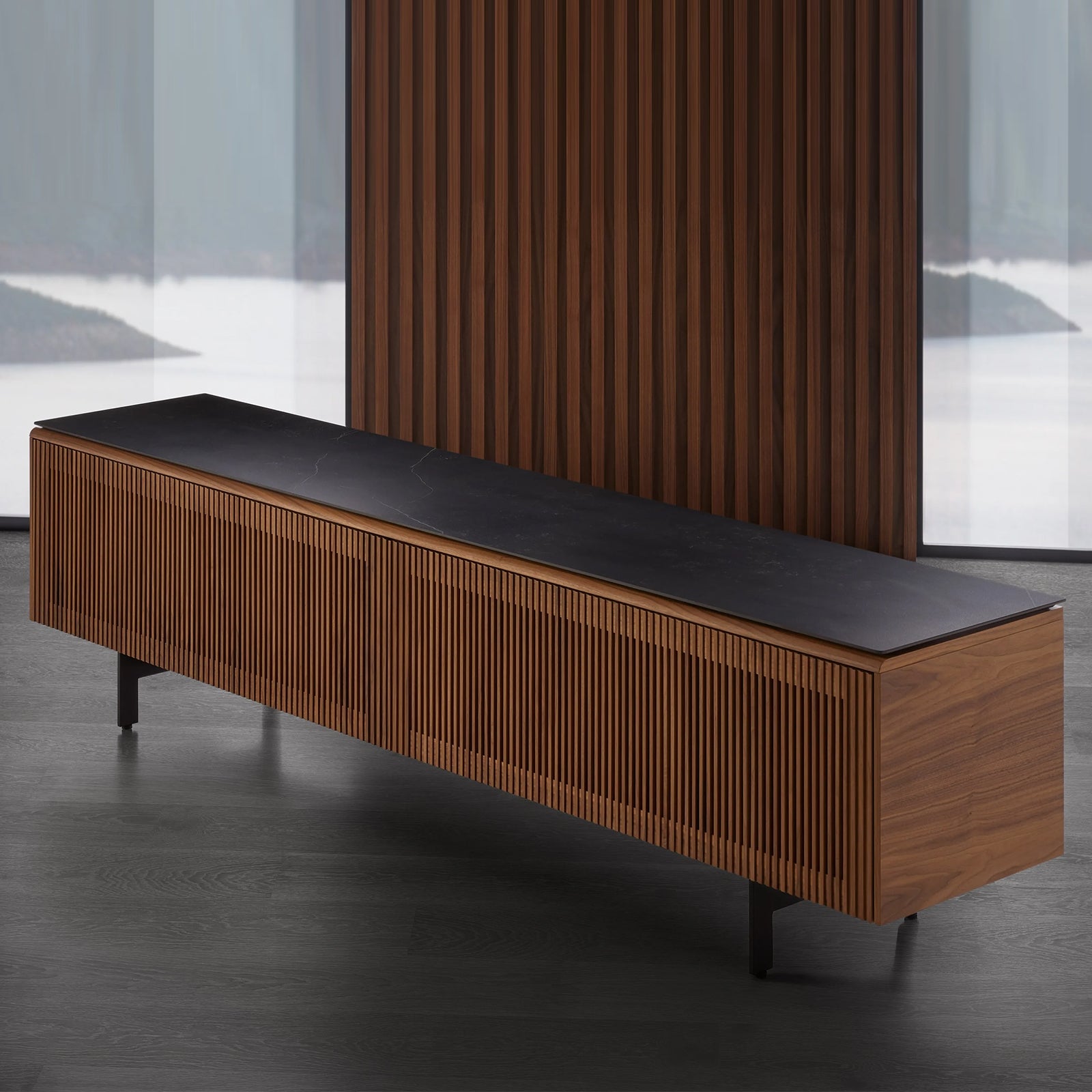 Slatted Door Design---The modern slatted doors allow for easy remote control signal access to electronics and the heat dissipation of console.