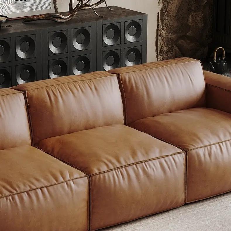 This 3-seater sofa, crafted from premium full-grain brown leather, epitomizes sophistication and timeless style, making it a perfect addition to any contemporary home.