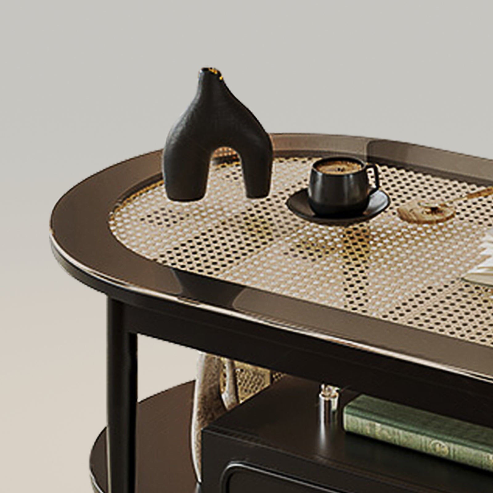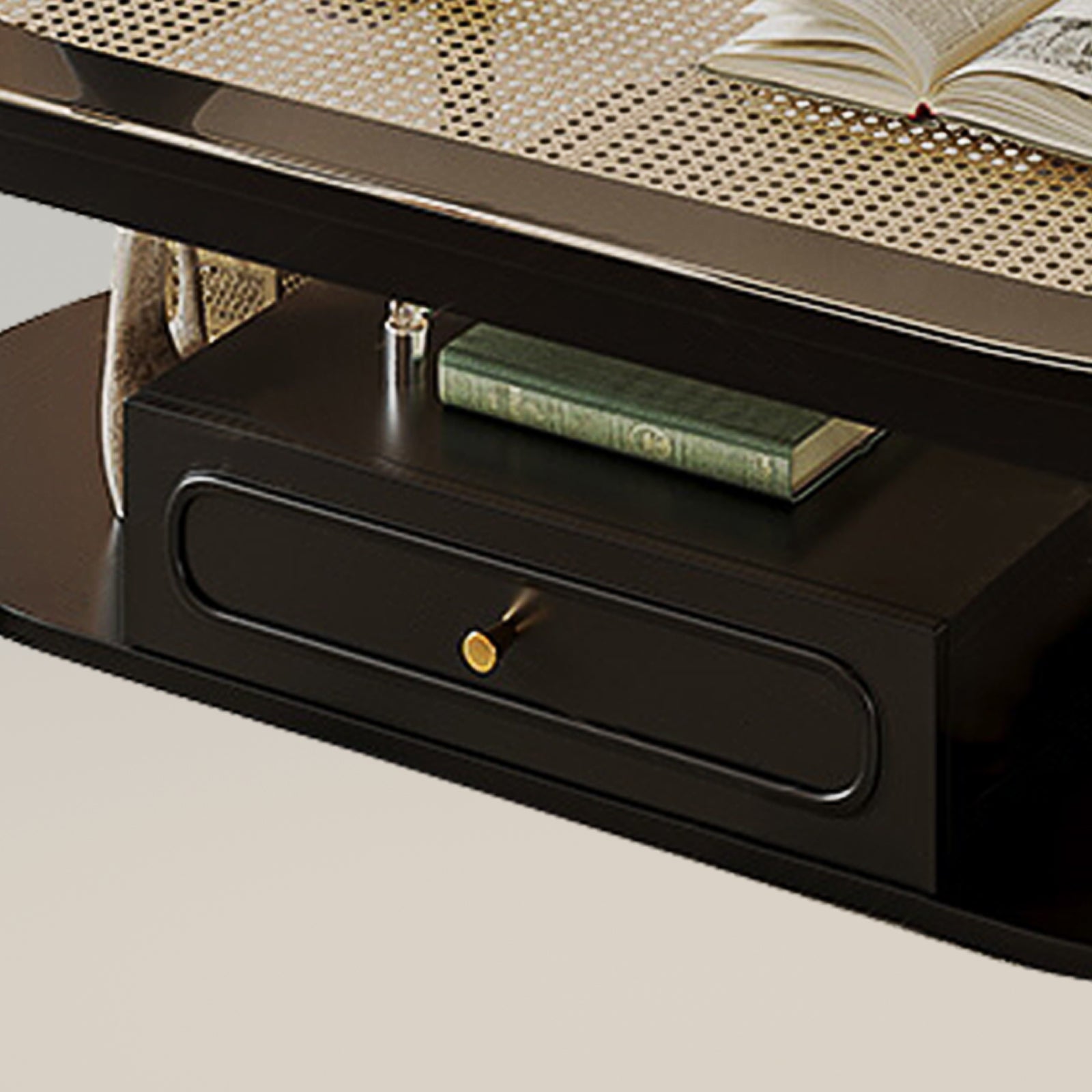 Classic Cane-Weave Design: The top of the coffee table features a classic cane-weave pattern, adding a warm and organic touch to your living room. The cane surface not only looks elegant but also provides a sturdy and durable area for placing your essentials.