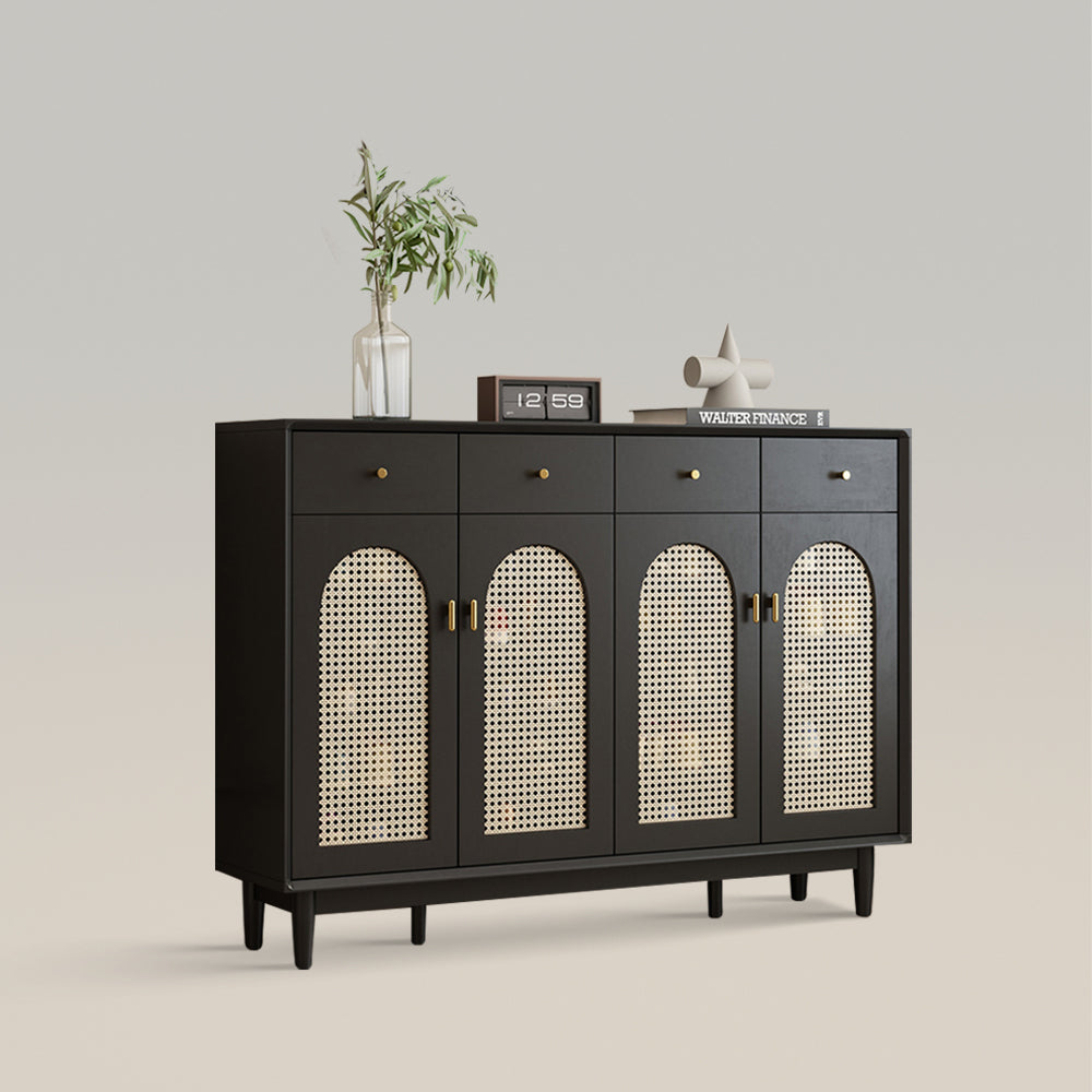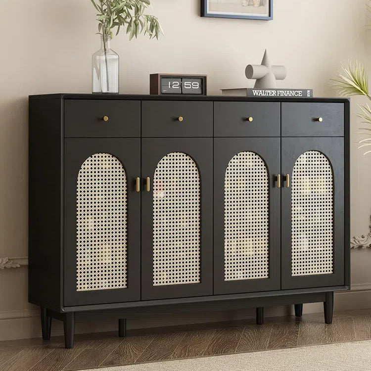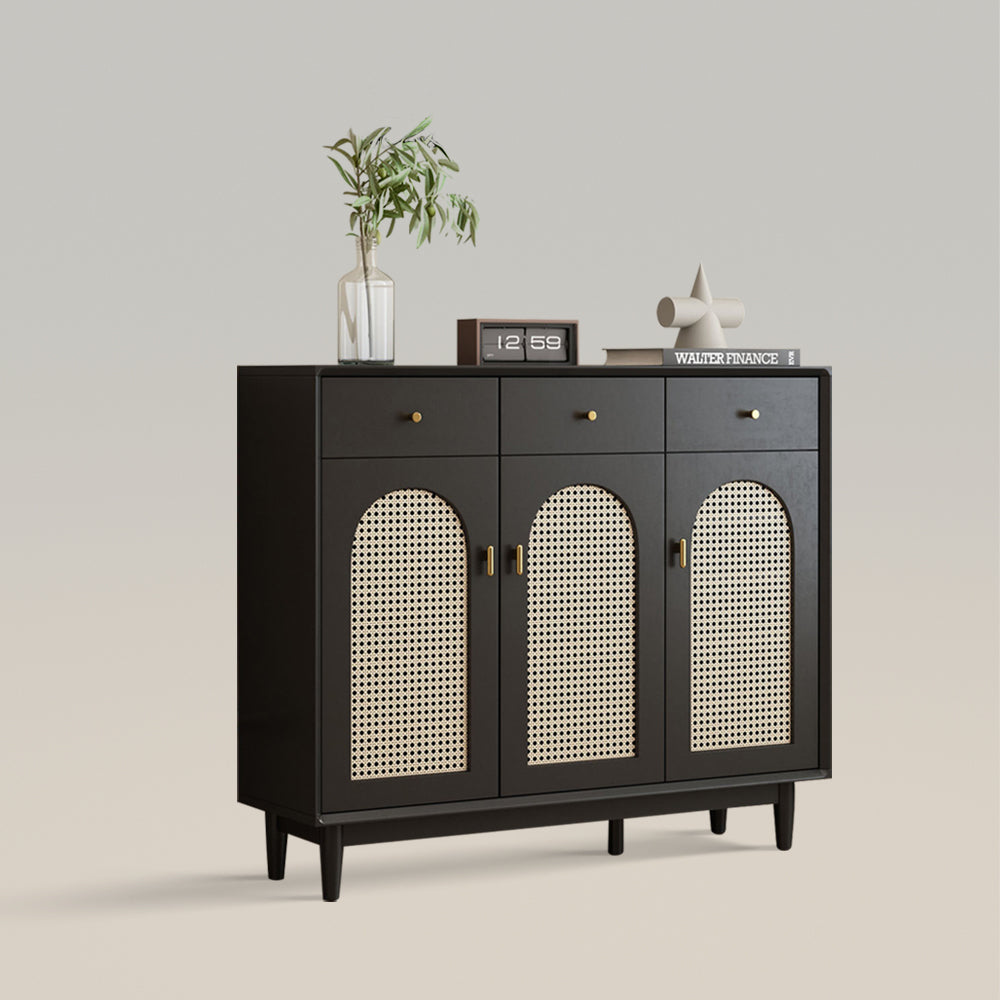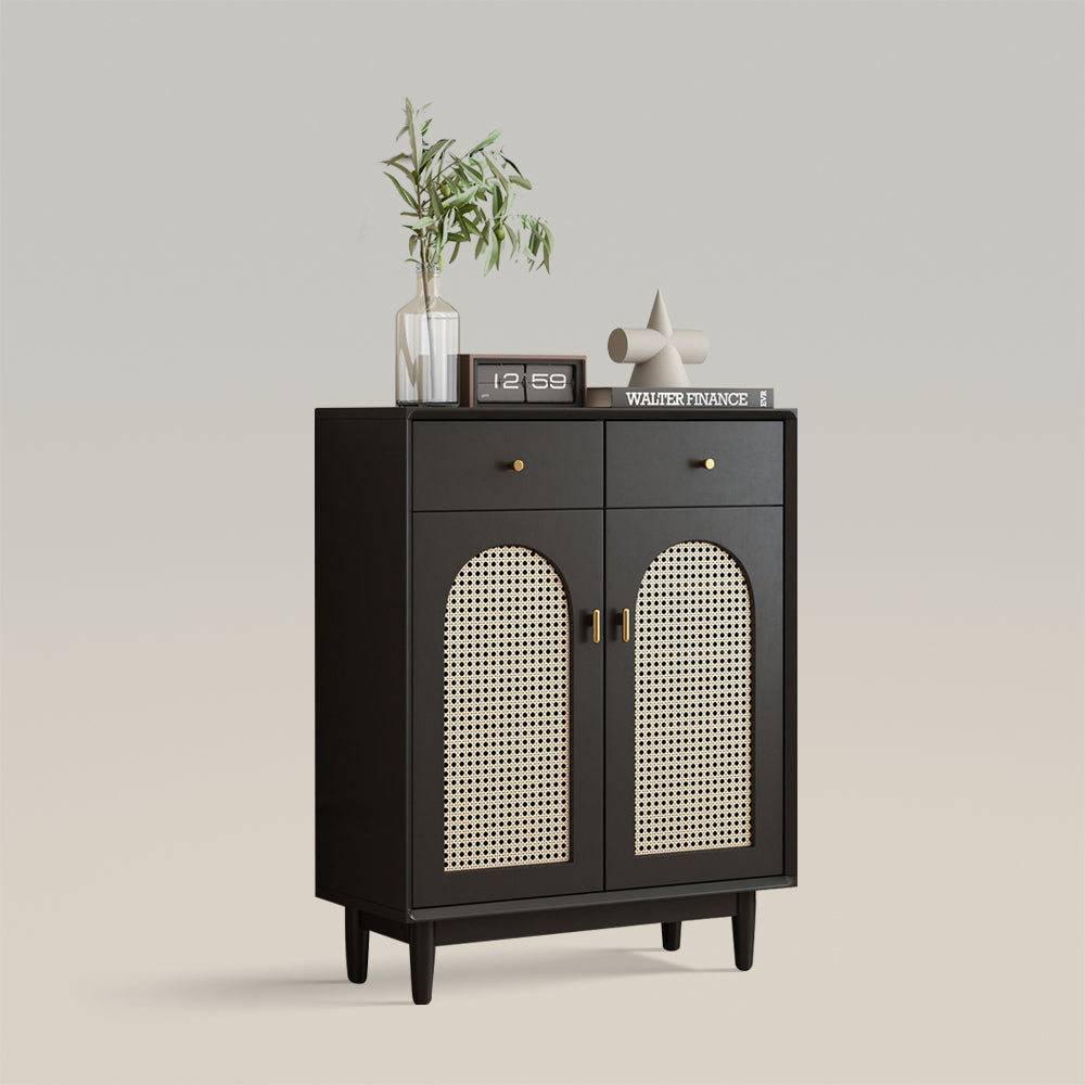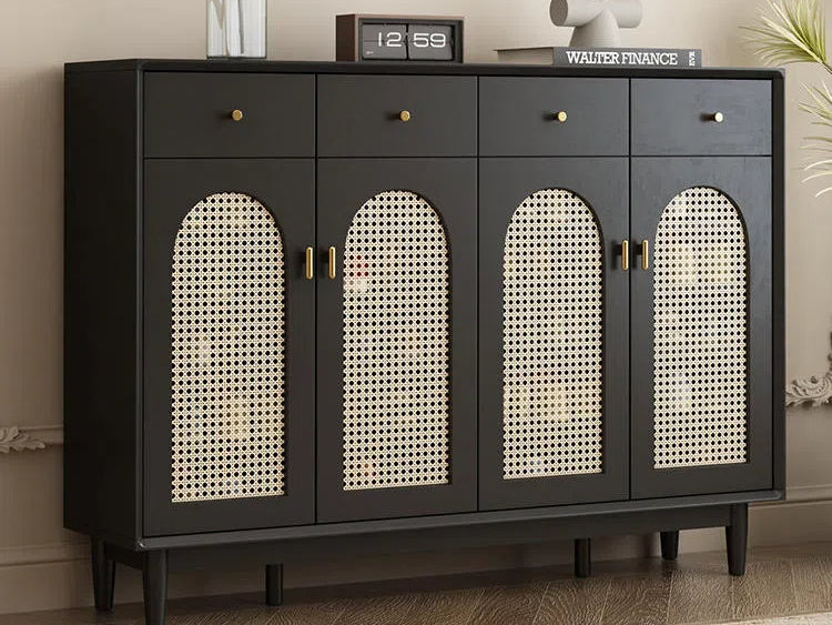 Retro Rattan Entryway Shoe Storage Cabinet