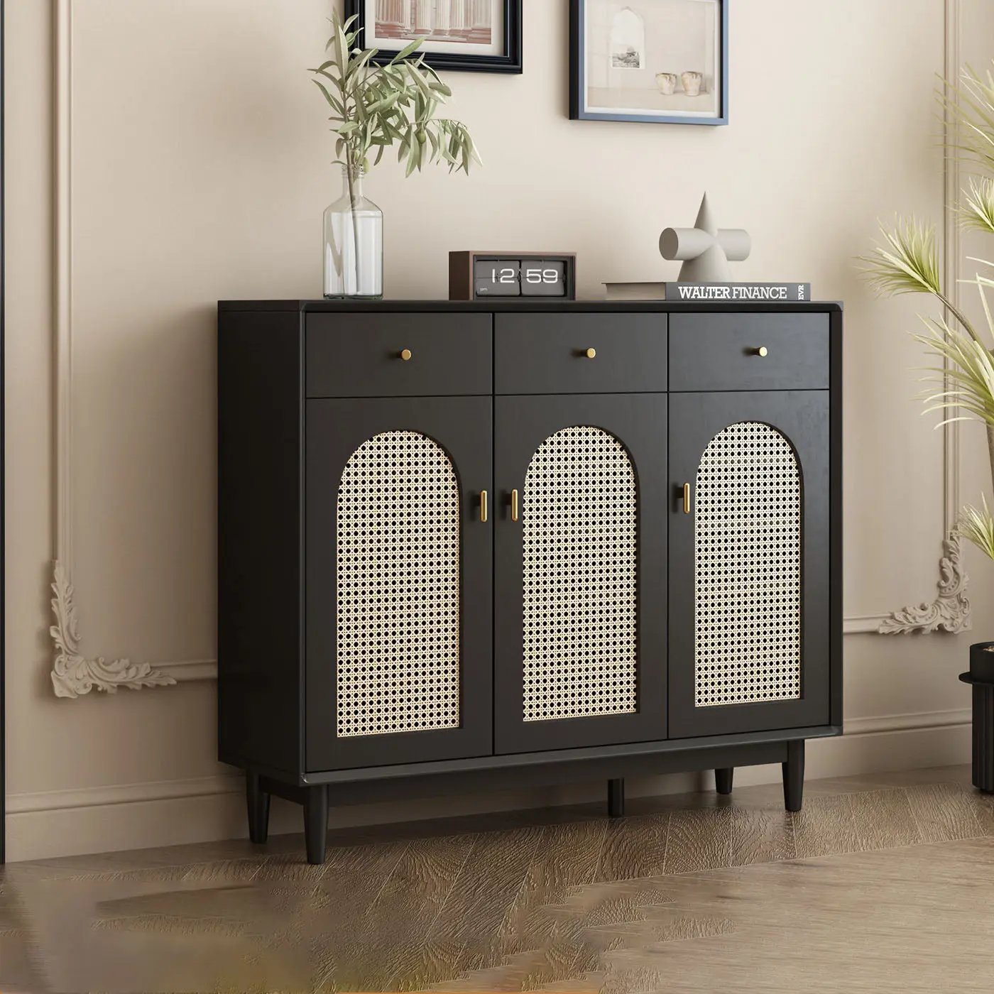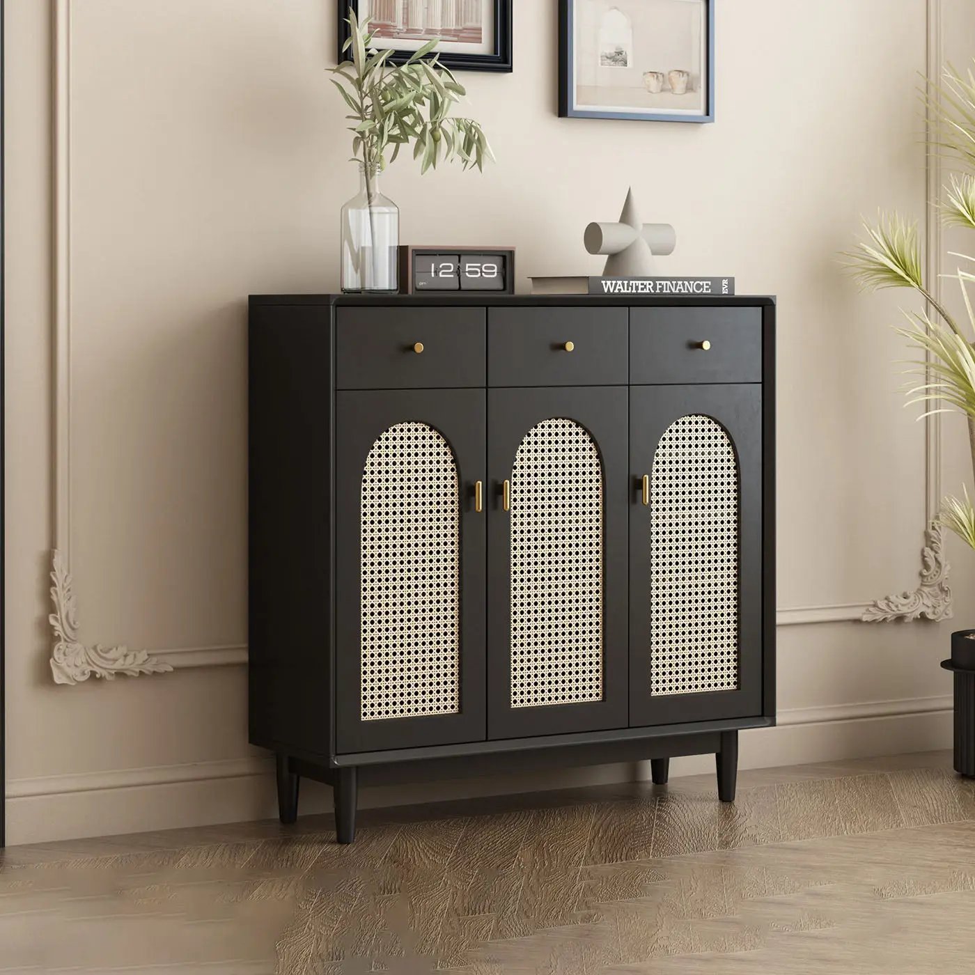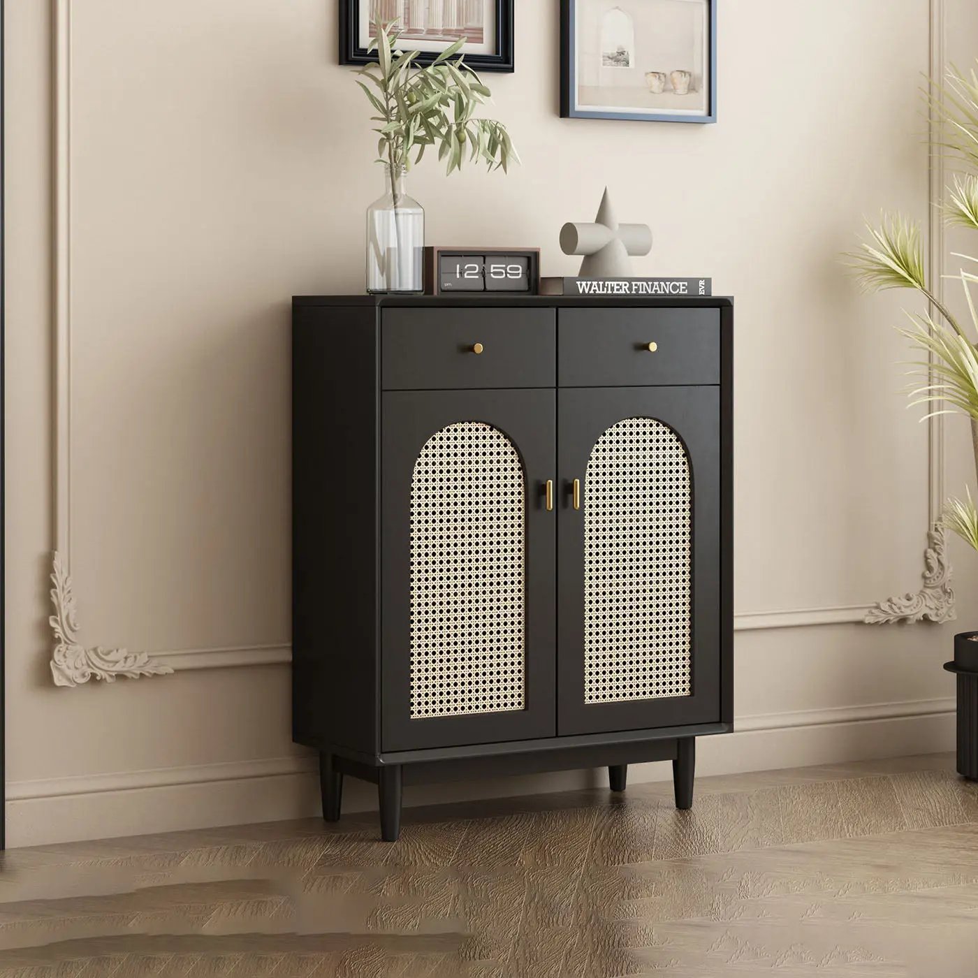 Retro Rattan Entryway Shoe Storage Cabinet