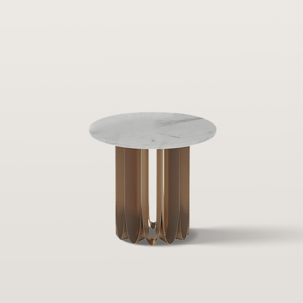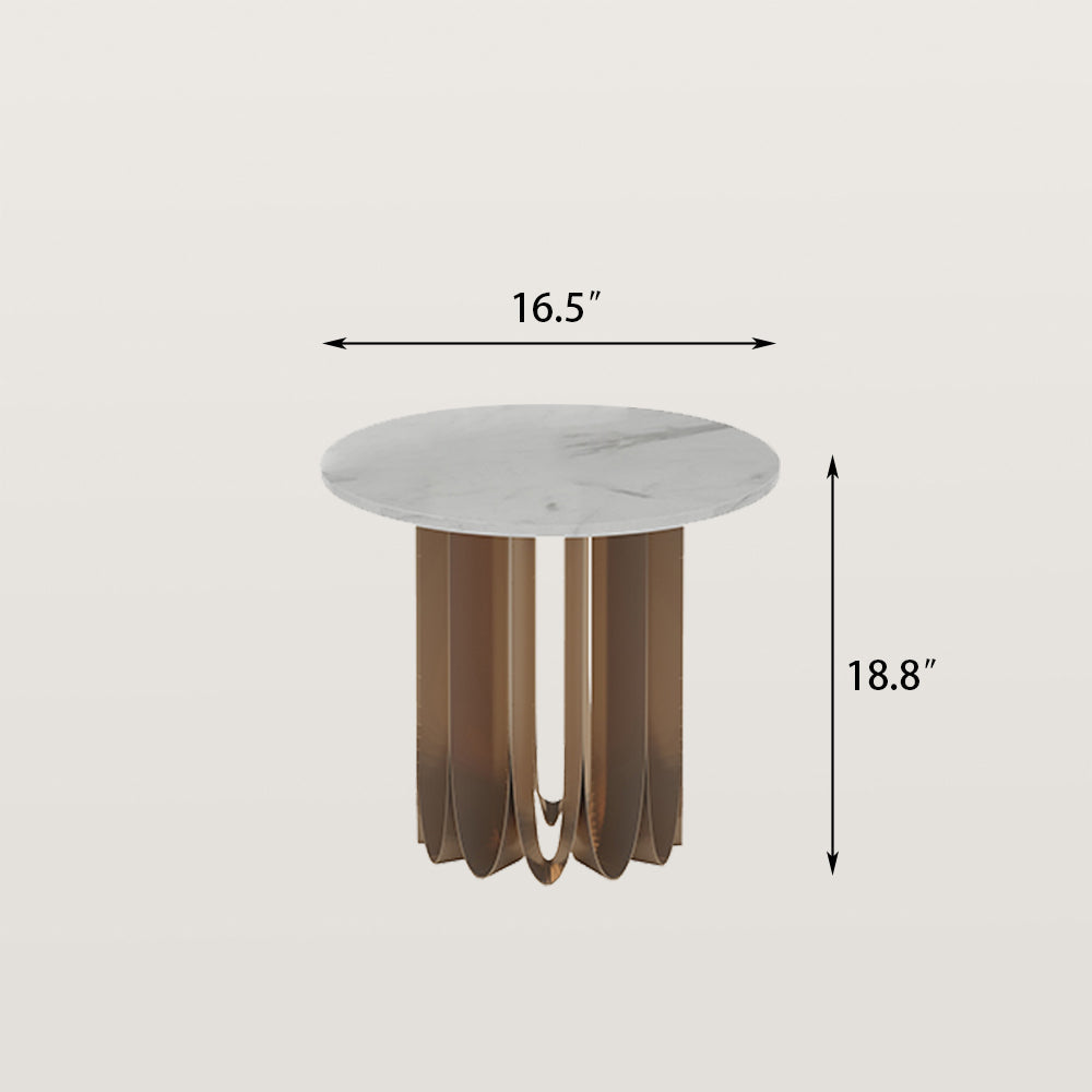 Modern round side table for living room combines modern minimalist design with a unique appearance. It features a round sintered stone tabletop and a creatively hollowed-out tapered carbon steel base, adding a touch of style and elegance to your living room. This small side table round comes fully assembled, allowing you to enjoy its beauty right out of the box.